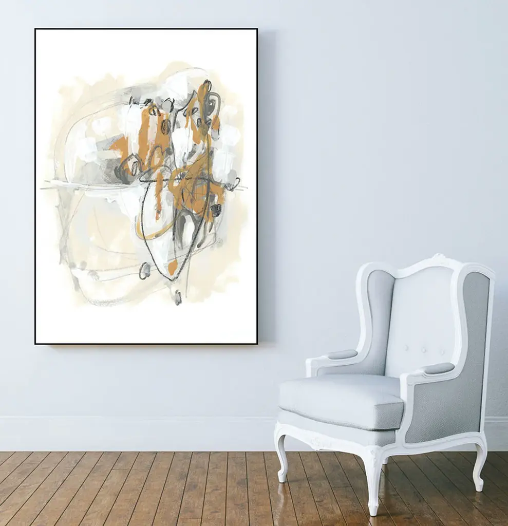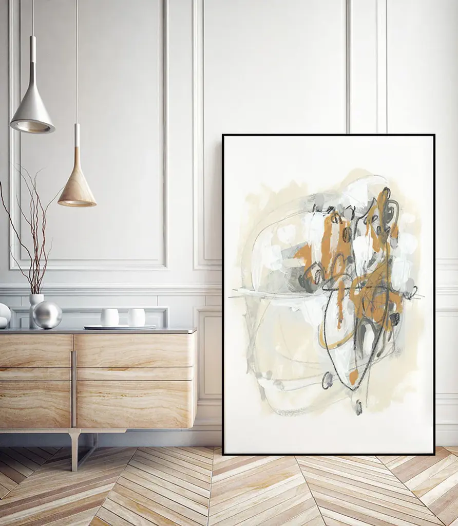Your ready-to-hang artwork is printed on canvas then stretched and mounted to a 2 inch-thick, hand-stained black wood frame. Arrives at your door complete with an easy-to-use self-leveling hanging kit.