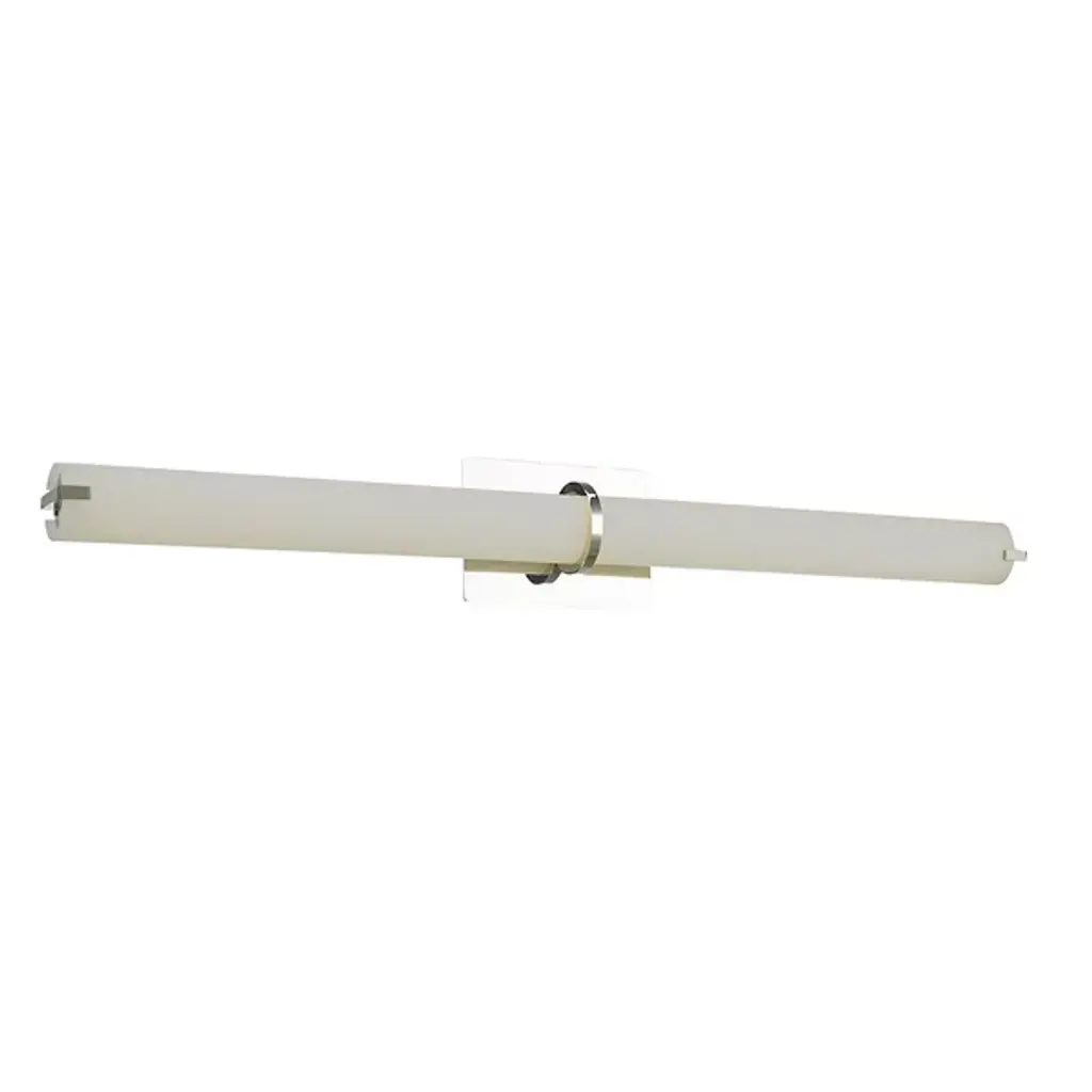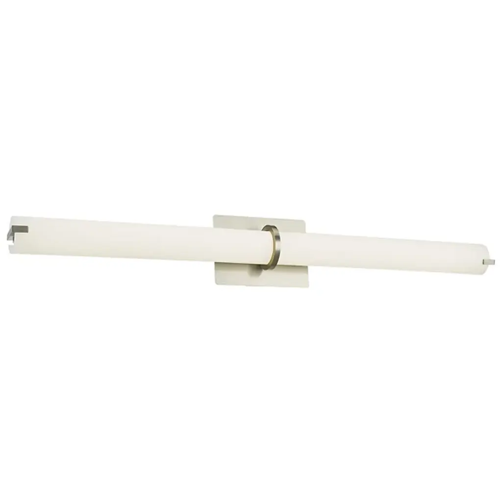 The Squire LED Round Vanity Light by Abra Lighting offers a clean and elegant look for bathrooms and vanity areas. A single tubular shade extends widely to send a balanced beam of ambient light throughout. Inside, an energy-efficient LED light source ensures long-lasting, soft illumination, while a central metal ring offers a chic, decorative accent. With the ability to be mounted vertically or horizontally, this fixture is adaptable enough for a variety of layouts.