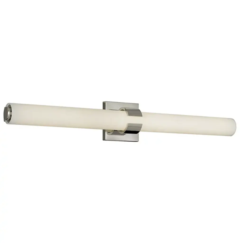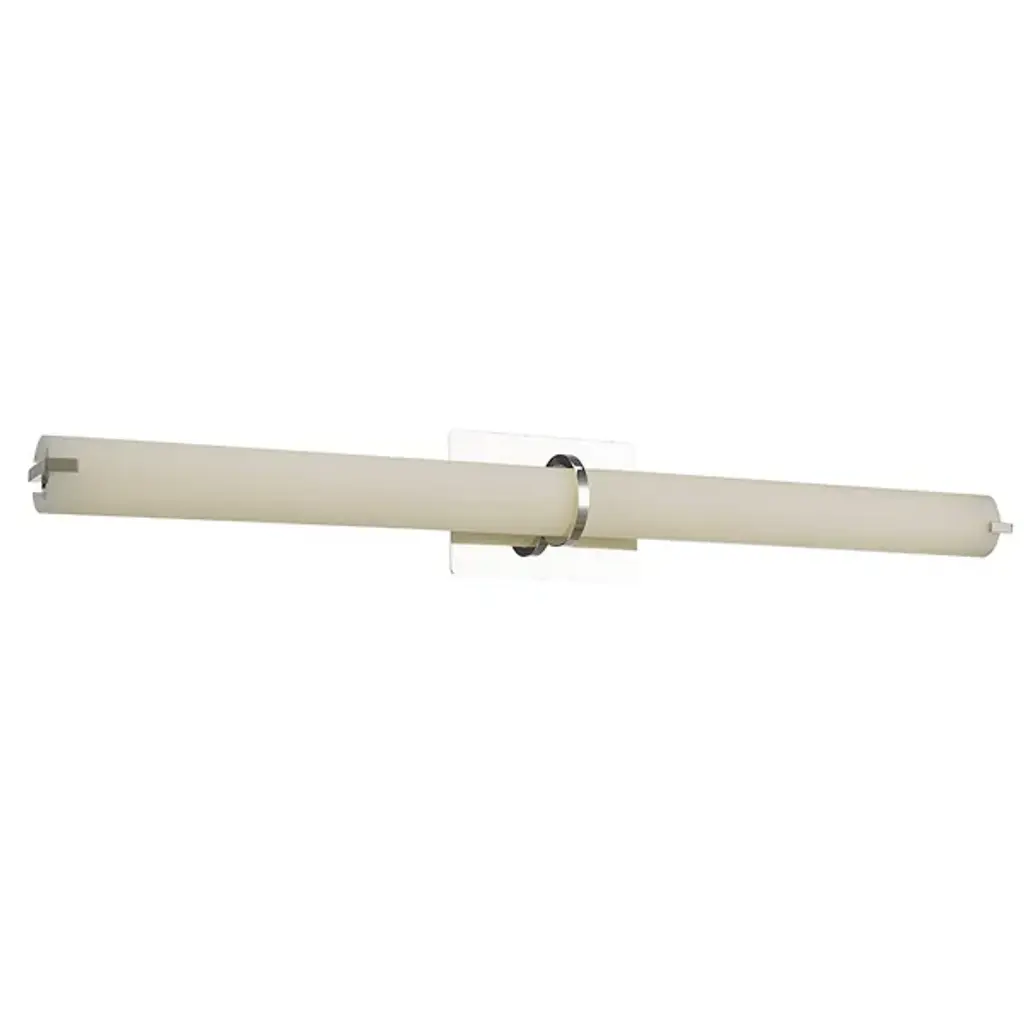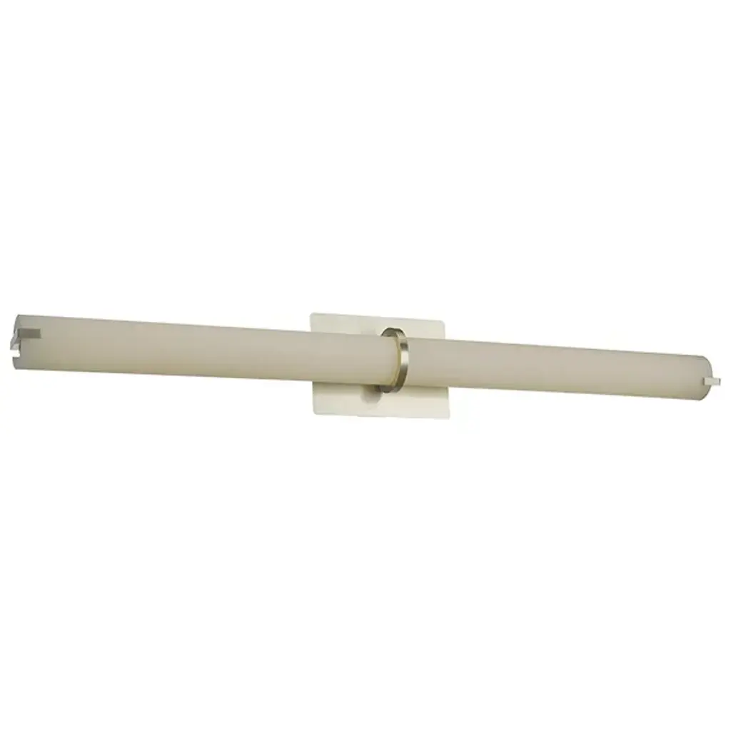 The Squire LED Round Vanity Light by Abra Lighting offers a clean and elegant look for bathrooms and vanity areas. A single tubular shade extends widely to send a balanced beam of ambient light throughout. Inside, an energy-efficient LED light source ensures long-lasting, soft illumination, while a central metal ring offers a chic, decorative accent. With the ability to be mounted vertically or horizontally, this fixture is adaptable enough for a variety of layouts.