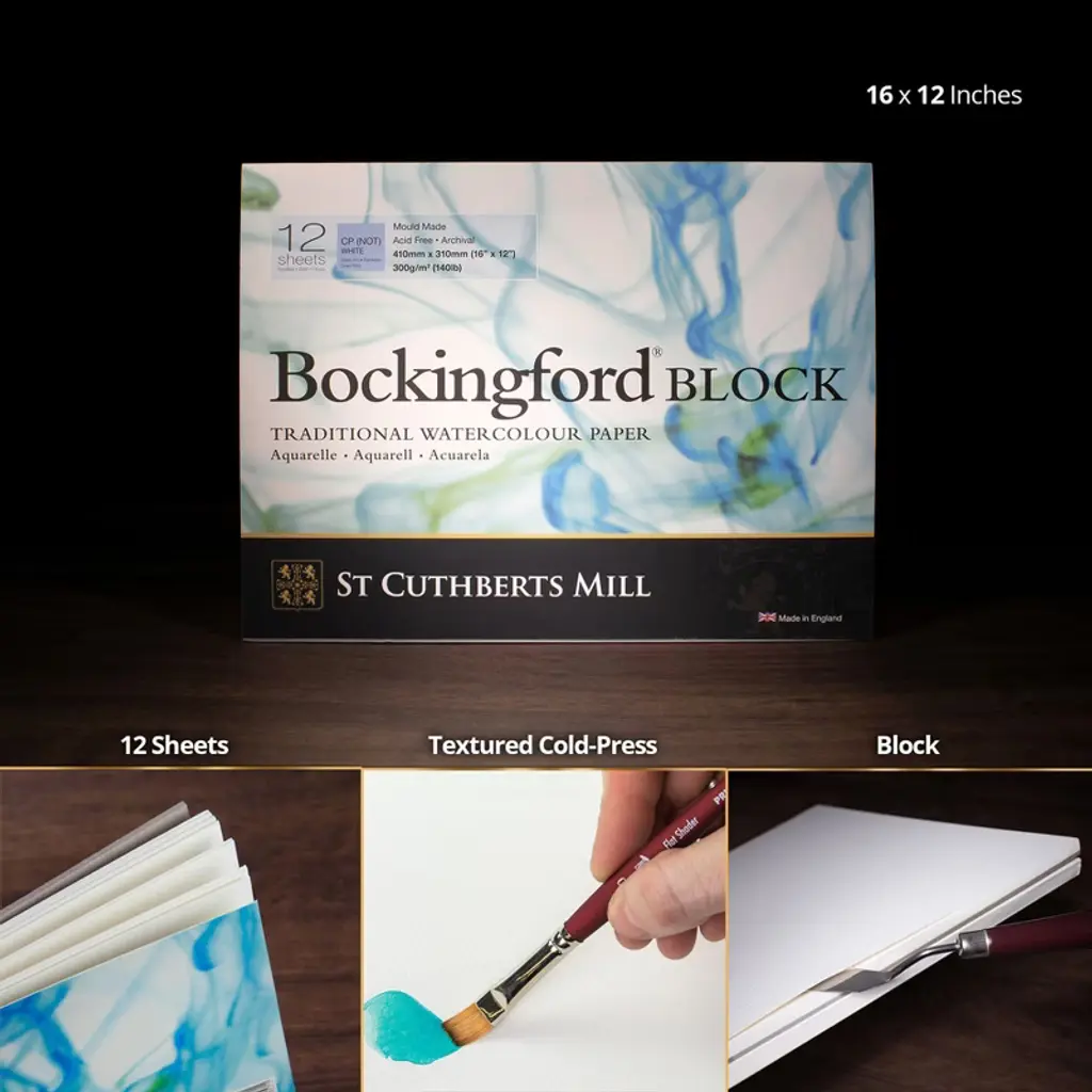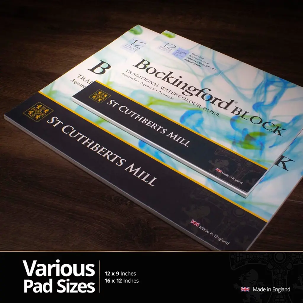 St Cuthberts Bockingford Watercolor Block, Cold Pressed, White, 140lb/300gsm, 12 Sheet, 12x16 Inch, 1 Count
