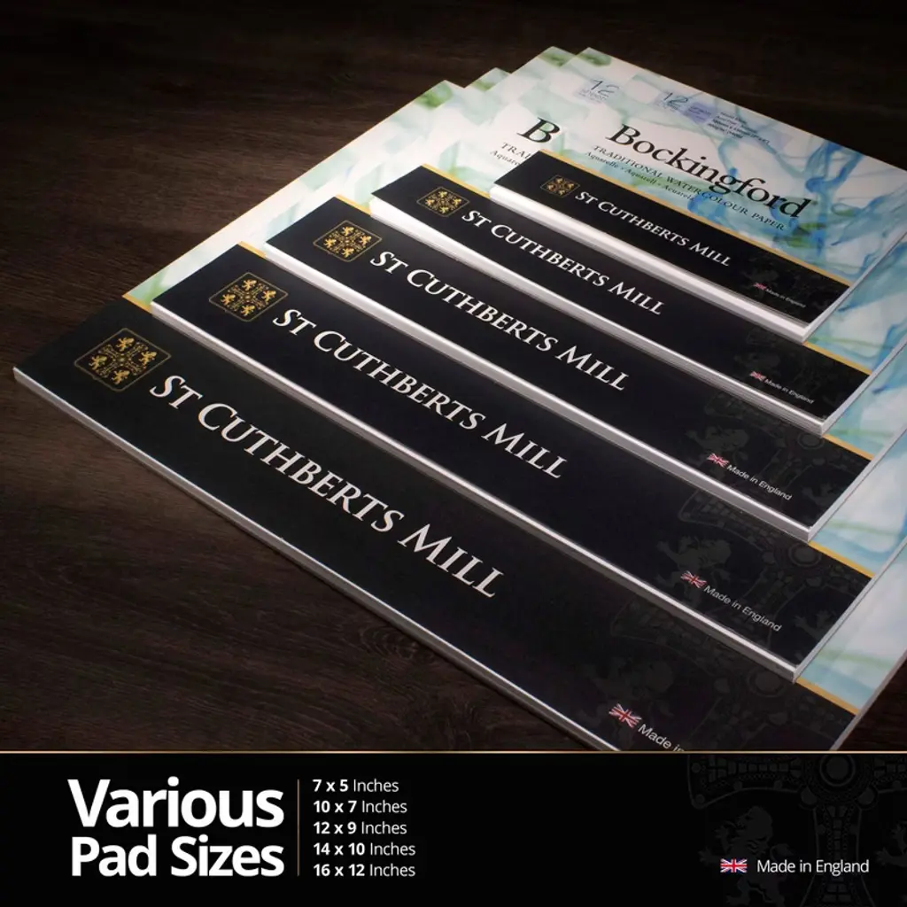 St Cuthberts Bockingford Watercolor Pad, Cold Pressed, Glue Binding, 140lb/300gsm, 12 Sheet, 7x10 inch, Pack of 2 | Experience the magic of Bockingford® — a stunning English watercolor paper crafted with tradition & precision at St Cuthberts Mill. Created on a classic cylinder mould machine, this high-quality paper is made from pure, archival-grade materials, ensuring your artwork stands the test of time. The unique, random texture of Bockingford® comes from natural woolen felts, making each sheet a tactile delight. Its exceptional color-lifting abilities & forgiving nature make it a dream canvas for both seasoned pros & aspiring artists alike. Bockingford® brings you premium watercolor paper without the premium price tag, offering the perfect balance of quality & affordability. Unlock your creativity & let your art shine on a surface designed for brilliance! For centuries, St Cuthberts has honed the art of papermaking. Our legacy, combined with one of the world's rare cylinder mould machines, crafts papers of unparalleled quality. We commit to using only the purest raw materials, ensuring our archival papers meet the highest standards. Specially sourced pulps, cotton linters & woolen felts create surface textures that are as unique as they are exquisite. It's no wonder that artists around the globe choose St Cuthberts for their masterpieces. Bockingford® is a stunning English watercolor paper crafted with care & meticulously made from pure materials to archival standards, its beautiful surface is achieved through natural woolen felts, creating a unique, random texture that artists adore. Renowned for its superb color lifting properties, Bockingford® is a favorite among both professionals & enthusiasts for its forgiving nature. Sold as a pack of 2.