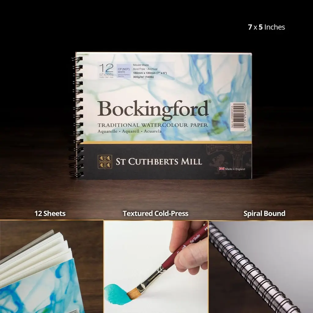 St Cuthberts Bockingford Watercolor Pad, Cold Pressed, Spiral Binding, 140lb/300gsm, 12 Sheet, 5X7 Inch, 1 Count