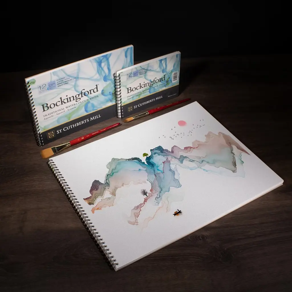 St Cuthberts Bockingford Watercolor Pad, Cold Pressed, Spiral Binding, 140lb/300gsm, 12 Sheet, 5x7 inch, 1 Count | Experience the magic of Bockingford® — a stunning English watercolor paper crafted with tradition & precision at St Cuthberts Mill. Created on a classic cylinder mould machine, this high quality paper is made from pure, archival grade materials, ensuring your artwork stands the test of time. The unique, random texture of Bockingford® comes from natural woolen felts, making each sheet a tactile delight. Its exceptional color-lifting abilities & forgiving nature make it a dream canvas for both seasoned pros & aspiring artists alike. Bockingford® brings you premium watercolor paper without the premium price tag, offering the perfect balance of quality & affordability. Unlock your creativity & let your art shine on a surface designed for brilliance! For centuries, St Cuthberts has honed the art of papermaking. Our legacy, combined with one of the world's rare cylinder mould machines, crafts papers of unparalleled quality. We commit to using only the purest raw materials, ensuring our archival papers meet the highest standards. Specially sourced pulps, cotton linters & woolen felts create surface textures that are as unique as they are exquisite. It's no wonder that artists around the globe choose St Cuthberts for their masterpieces. Bockingford® is a stunning English watercolor paper crafted with care & meticulously made from pure materials to archival standards, its beautiful surface is achieved through natural woolen felts, creating a unique, random texture that artists adore. Renowned for its superb color lifting properties, Bockingford® is a favorite among both professionals & enthusiasts for its forgiving nature.