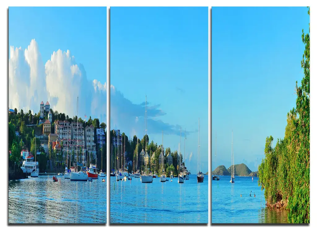 The St John Bay Panoramic View canvas art print is sure to make an impression on anyone who sees it. This artwork is gallery wrapped around a 1-inch solid wood frame and arrives carefully packaged and entirely ready to hang on the wall. Design Art only uses the highest resolution and pigments to ensure a crisp colorful print that is never faded or pixelated. This artwork is sure to be a conversation starter in any home or office.