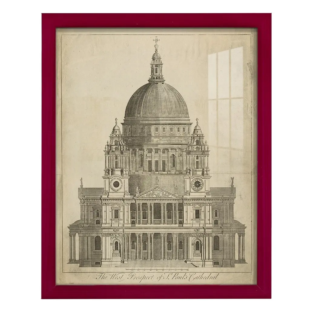 St. Paul's Cathedral -Framed Print W/glass-Cherry Red - 12x15 - Natural