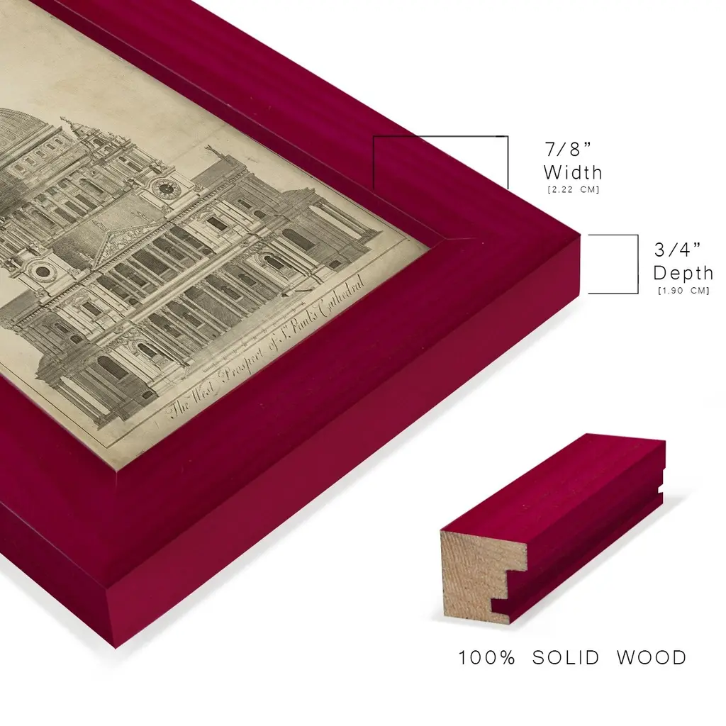 St. Paul's Cathedral -EZ SWITCH Framed Print w/glass-Cherry Red A delightful, framed print. Featuring a solid wood frame with real wood glass. This premium print is giclee quality. In addition, every frame features a removable back and table top stand. This allows you to change your art in the future or to just stand the art on a table for a new look. We are sure you'll enjoy our new series of EZ SWITCH Framed Art. Solid Wood Frame Real Glass Removable / Replaceable Art Built in Tabletop Stand Sizes range from 4x6 up to 12x15 - buy just one or pair them up as sets as you see fit.