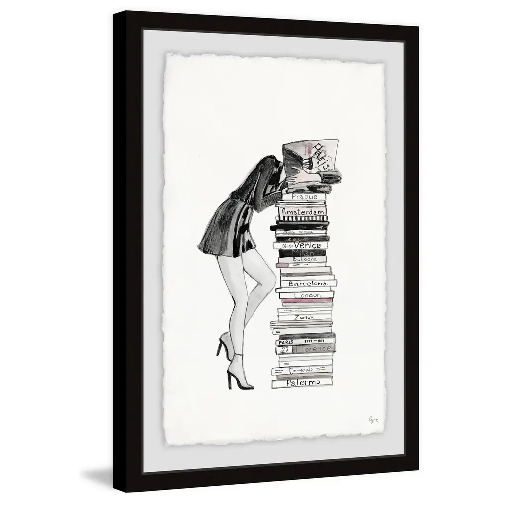 Reflect your love of reading with this sweet and eye-catching print. The black and white artwork features a stylish woman with her head buried in the top volume of a large stack of books, the stylized lines evoking a sense of vintage fashion. The picture is giclee printed onto high resolution archive paper with eye-catching deckled edges, mounted inside a black finish, non-warping frame.Features:Marmont Hill is a collective of artists - spearheaded by Parvez Taj who acts as the creative director. Together we create original works of art, which are printed on a variety of materials such as aluminum, canvas, mirror and reclaimed wood. The collective is inspired by people, places and things. Each limited edition piece is handcrafted with love and care.