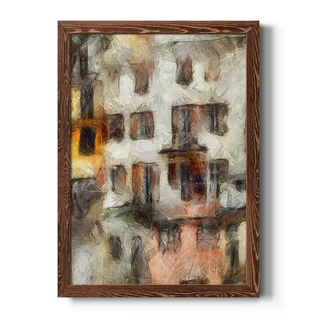 Stacked Houses Iii-Premium Framed Canvas - Ready To Hang - 31.5x43.5 - Walnut