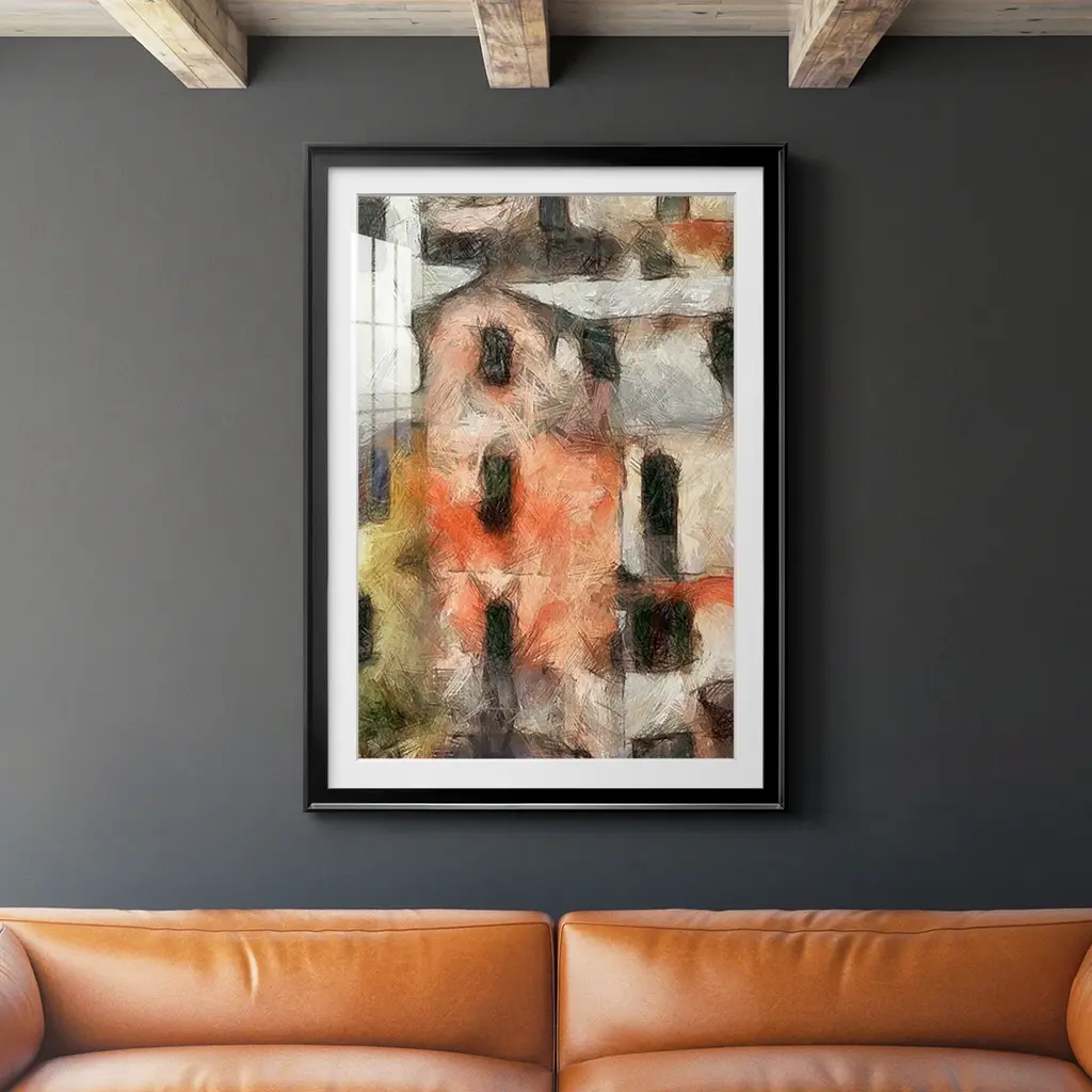 Stacked Houses IV Premium Framed Print - Ready to Hang A Premium Framed Print created to last. Framed in distressed wood and available in an array of sizes and colors Featuring a beveled a solid wood stretcher bar, each piece comes ready to hand 4 SIZES AVAILABLE 30.5''X42.5'' - Overall Size 26.5'X36.5'' - Overall Size 22.5''x30.5'' - Overall Size 18.5''x24.5'' - Overall Size Each piece is made to order. Each piece comes with hanging hardware. Made in the USA Ready to Hang Giclee Paper Print Acrylic Glass Beveled Matt Board
