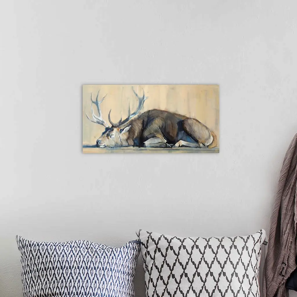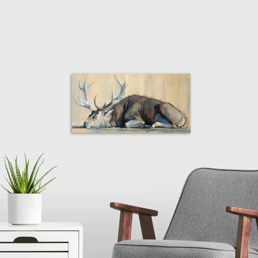 Contemporary artwork of a stag against an earthy background.