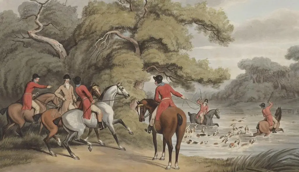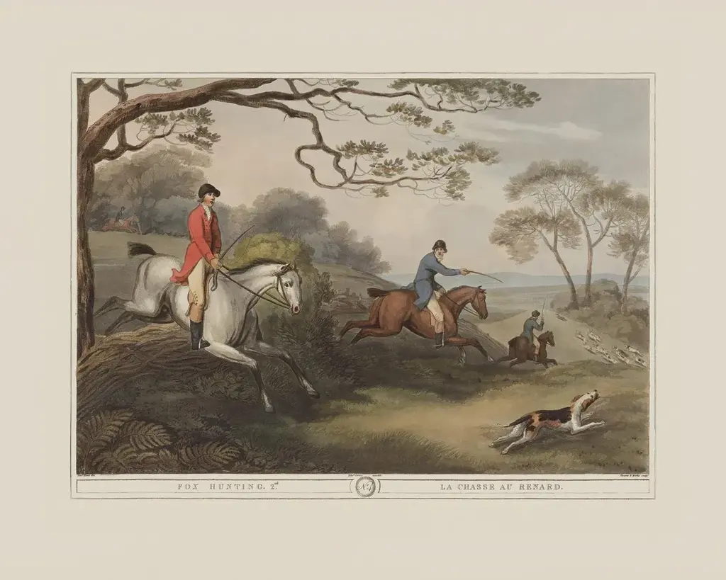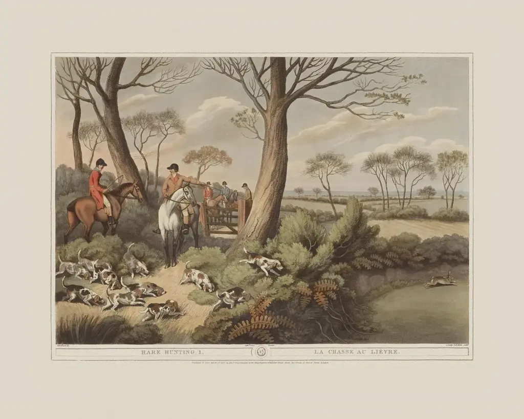 This giclée reproduction of "Stag Hunting 2" remastered by CFA Editions, is from one of the most esteemed collections of hunting scenes ever published. The original work is part of Orme's Collection of British Field Sports, a landmark in sporting art, featuring twenty exquisitely hand-colored engravings based on designs by the celebrated artist Samuel Howitt. Published by Edward Orme of London between 1807 and 1808, this series showcases vibrant scenes of hunting, shooting, and racing. Howitt, renowned for his depictions of wildlife, hunting, and equestrian subjects, collaborated with five master engravers to bring these dynamic scenes to life. What sets this collection apart is its use of the aquatint technique, a method highly favored by English printmakers of the late 18th and early 19th centuries. Aquatint's ability to mimic the delicate tones of watercolor made it perfect for capturing the vibrancy and detail of field sports. Due to the quality, subject matter, and craftsmanship, these prints are highly sought after by collectors of fine sporting art. 24 x 30 inches