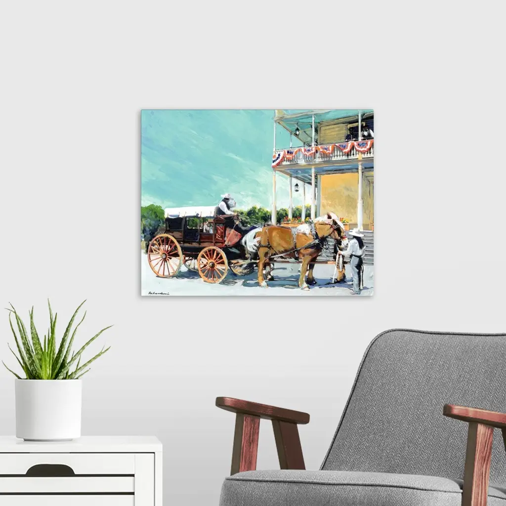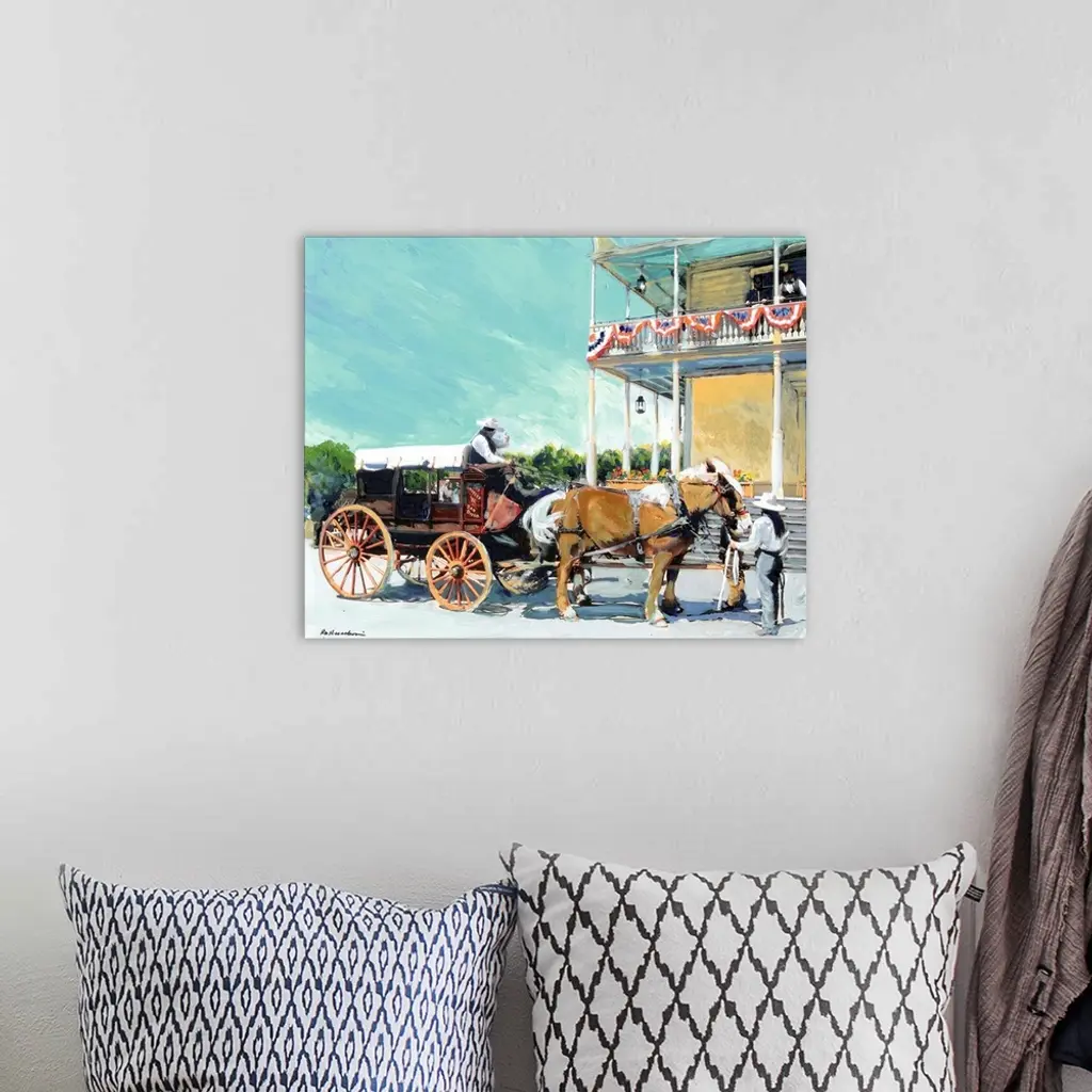 Stagecoach At The Cosmopolitan Hotel, Old Town San Diego, California. Painting by RD Riccoboni.