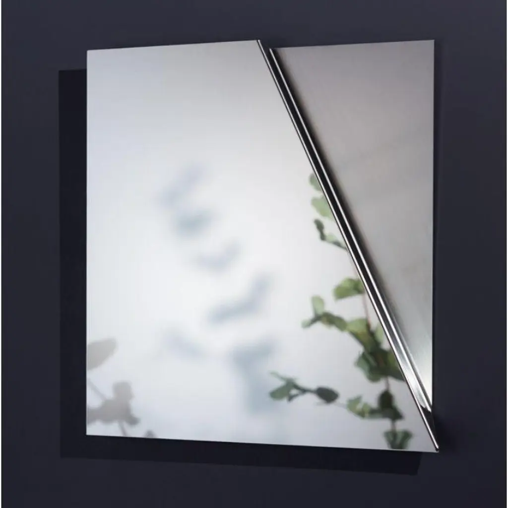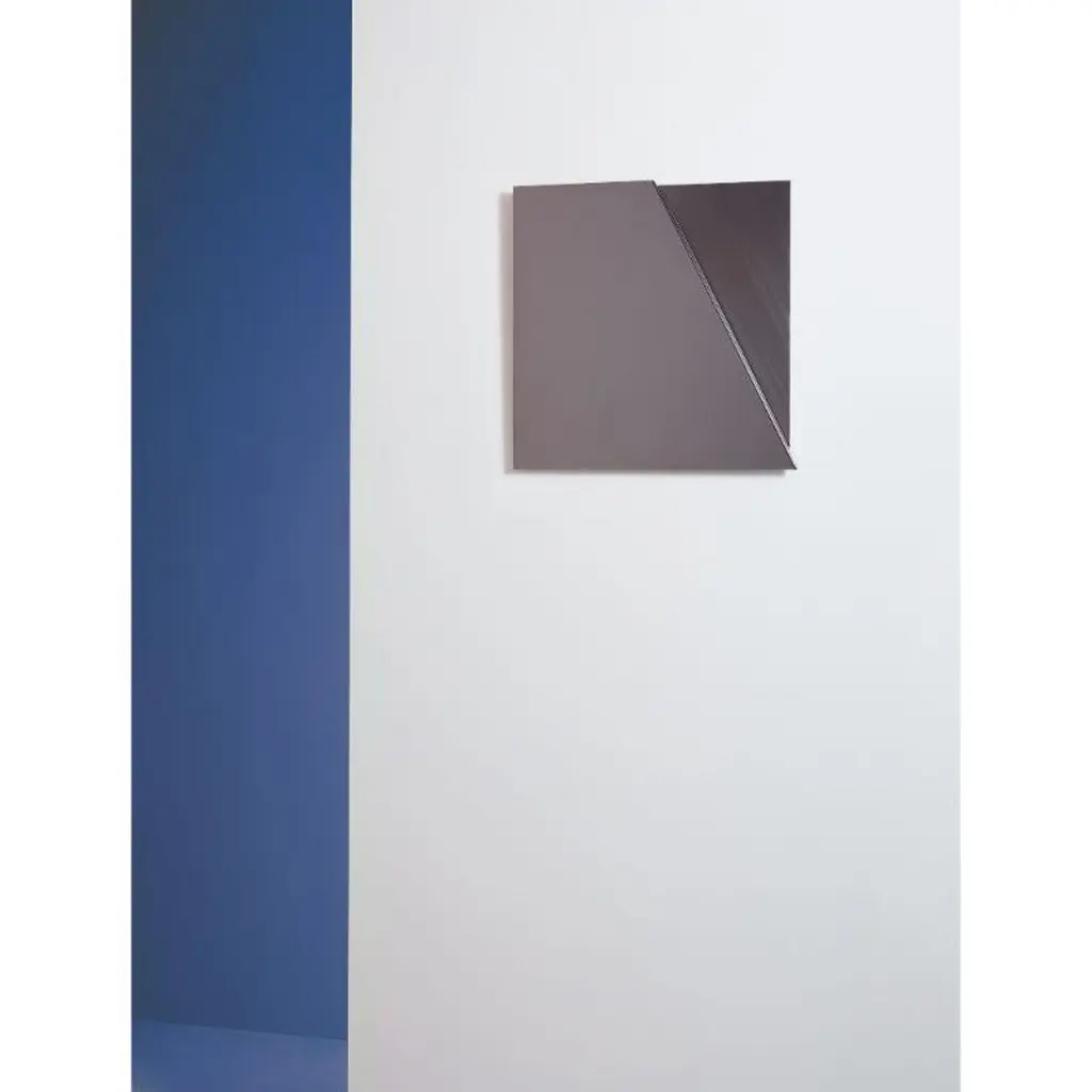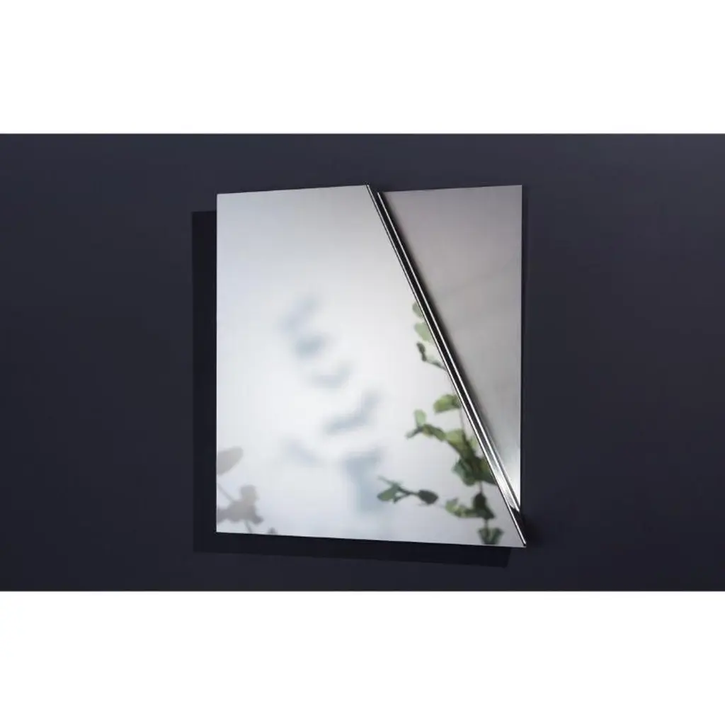 Stainless steel mirror, square by Theodora Alfredsdottir (onyx black)Materials: mirror.Dimensions: 50 x 50 cm.Also available: circle, rectangular in different colors (silver, black onyx and champagne).The collection consist of three types of stainless steel mirrors, in three different colours; silver, black onyx and champagne. The properties of the Material defined the final outcome, where different surface treatments and the fact that it can be folded are used to create the function of the object and its character. These functional sculptures are born from simple ww-dimensional sketches out of paper, that then were translated into experimentation with the properties of stainless steel sheets. The first mirror to be developed in the series was the square, which started off as a Challenge to transform a mirror-polished sheet into something with a bit more character, without adding or subtracting from its original form - therefore creating no waste. The design utilises how easily these sheets can be bent and manipulated and how different surface treatment changes their appearance and function. Each of the mirrors is laser cut and folded twice, and then the brushed section is finished off by hand. The project aims to increase general interest in the production of objects, make the understanding of materials and their transformation more accessible and increase knowledge of our immediate environment. This connection to the production of everyday objects aims to raise awareness and respect for resources and be reflected in increased consumer responsibility.Theodora Alfredsdottir is a product design studio based in London. Theodora is an Icelandic product designer. She holds a bachelor’s degree in product design from the Iceland Academy of the Arts (2012) and a master’s degree in Design Products from the Royal College of Art in London (2015).Storytelling through objects; Theodora’s work revolves around the narrative an object can inhabit and exploring ways of objectifying that narrative. She's interested in the way an object can act as documentation of its manufacturing process; a record of what went on between the machine, tools, craftsman and Material as well as it can communicate its origin and former life. In short, the object creates its own factual narrative. That often leads to the discovery of unexpected qualities as well as it gives the user a subtle opportunity to reconsider our Material world and explore value in a different way..