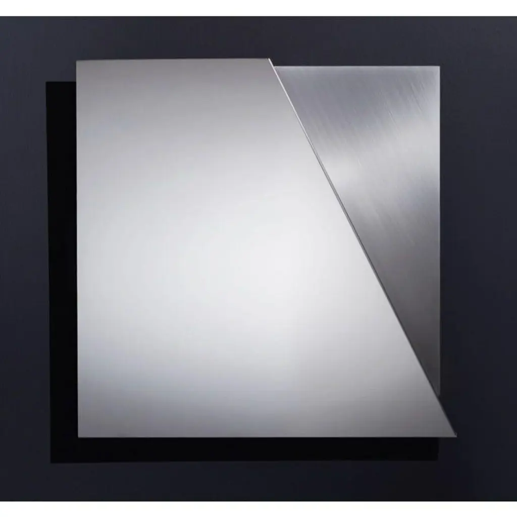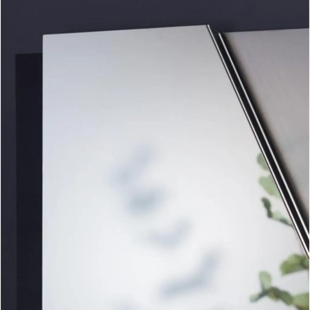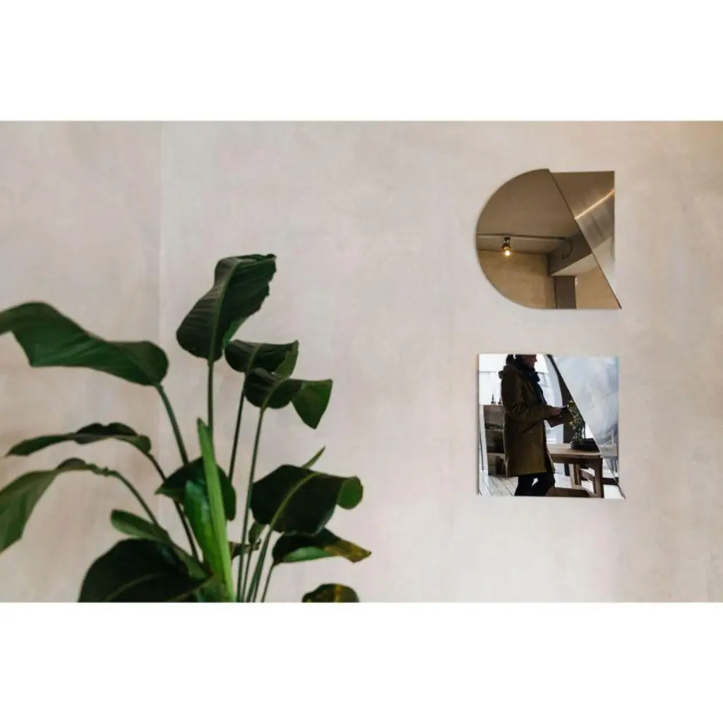 Stainless steel mirror, square by Theodora Alfredsdottir (onyx black)Materials: mirror.Dimensions: 50 x 50 cm.Also available: circle, rectangular in different colors (silver, black onyx and champagne).The collection consist of three types of stainless steel mirrors, in three different colours; silver, black onyx and champagne. The properties of the Material defined the final outcome, where different surface treatments and the fact that it can be folded are used to create the function of the object and its character. These functional sculptures are born from simple ww-dimensional sketches out of paper, that then were translated into experimentation with the properties of stainless steel sheets. The first mirror to be developed in the series was the square, which started off as a Challenge to transform a mirror-polished sheet into something with a bit more character, without adding or subtracting from its original form - therefore creating no waste. The design utilises how easily these sheets can be bent and manipulated and how different surface treatment changes their appearance and function. Each of the mirrors is laser cut and folded twice, and then the brushed section is finished off by hand. The project aims to increase general interest in the production of objects, make the understanding of materials and their transformation more accessible and increase knowledge of our immediate environment. This connection to the production of everyday objects aims to raise awareness and respect for resources and be reflected in increased consumer responsibility.Theodora Alfredsdottir is a product design studio based in London. Theodora is an Icelandic product designer. She holds a bachelor’s degree in product design from the Iceland Academy of the Arts (2012) and a master’s degree in Design Products from the Royal College of Art in London (2015).Storytelling through objects; Theodora’s work revolves around the narrative an object can inhabit and exploring ways of objectifying that narrative. She's interested in the way an object can act as documentation of its manufacturing process; a record of what went on between the machine, tools, craftsman and Material as well as it can communicate its origin and former life. In short, the object creates its own factual narrative. That often leads to the discovery of unexpected qualities as well as it gives the user a subtle opportunity to reconsider our Material world and explore value in a different way..