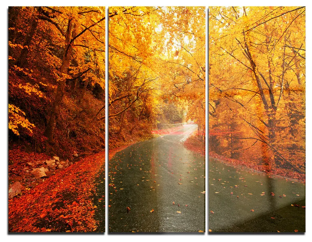 "Stairway Through Red Fall Forest" Landscape Photo Wall Art, 4 Panels, 48"x28"