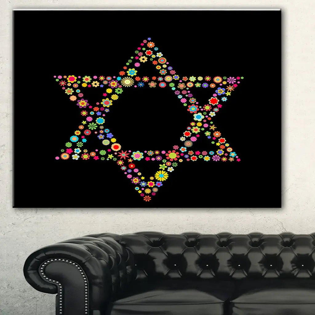 The Star of David Shape canvas art print is sure to make an impression on anyone who sees it. This artwork is gallery wrapped around a 1-inch solid wood frame and arrives carefully packaged and entirely ready to hang on the wall. Design Art only uses the highest resolution and pigments to ensure a crisp colorful print that is never faded or pixelated. This artwork is sure to be a conversation starter in any home or office.