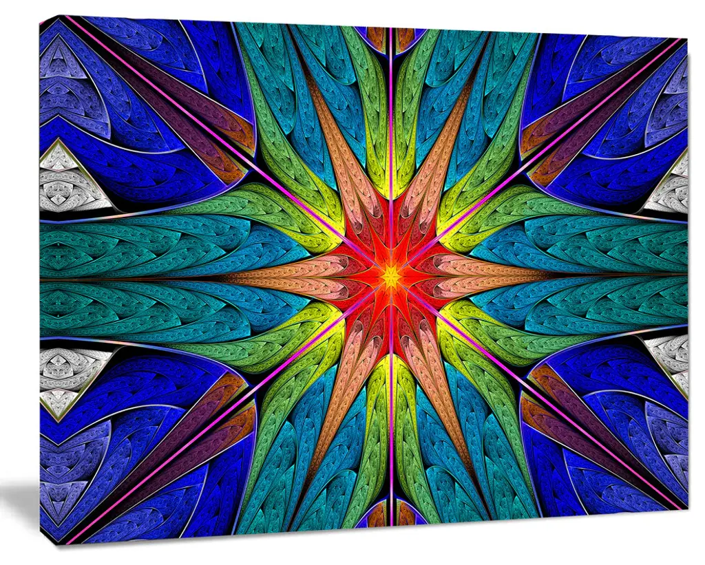 Star Shaped Blue Stained Glass, Oversized Abstract Canvas Art Print, 60x40