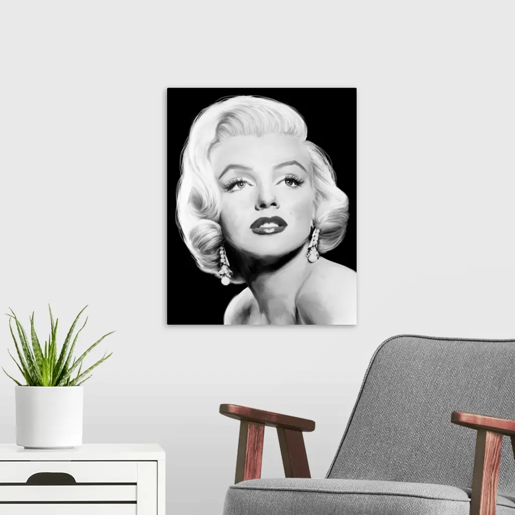 Digital art painting in black and white of Marilyn Monroe in Stardust by Jerry Michaels.