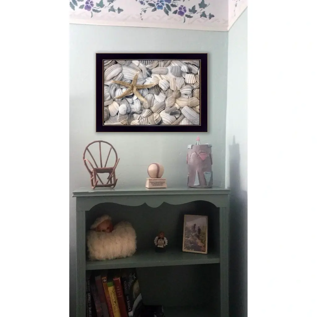 Unique and decorative, this starfish and seashell 1 black framed print wall art will leave a lasting impression. This print is a visual artistic expression that allows you to decorate your space in style. Reproduced for you on paper, this hanging decorative accent will be a trendy and fashionable way to dress your walls. Adding this hanging wall art to your space to make your room feel more finished and attractive. Utilize this opportunity to create a focal point in the room with this fabulous wall decor option. 14" H x 20" W x 1" D