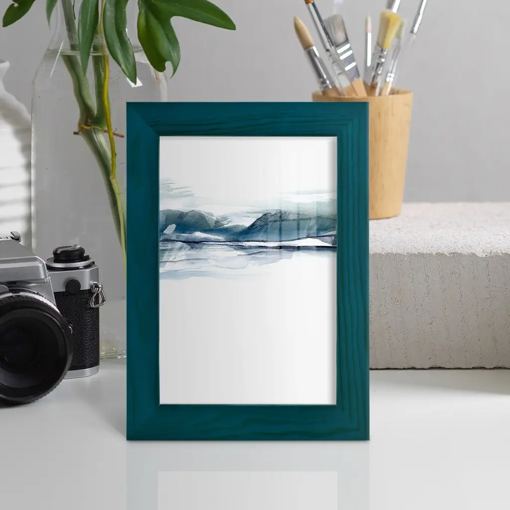 Stark Horizon I -Framed Print W/glass-Cherry Red - 4X6 - Blue
