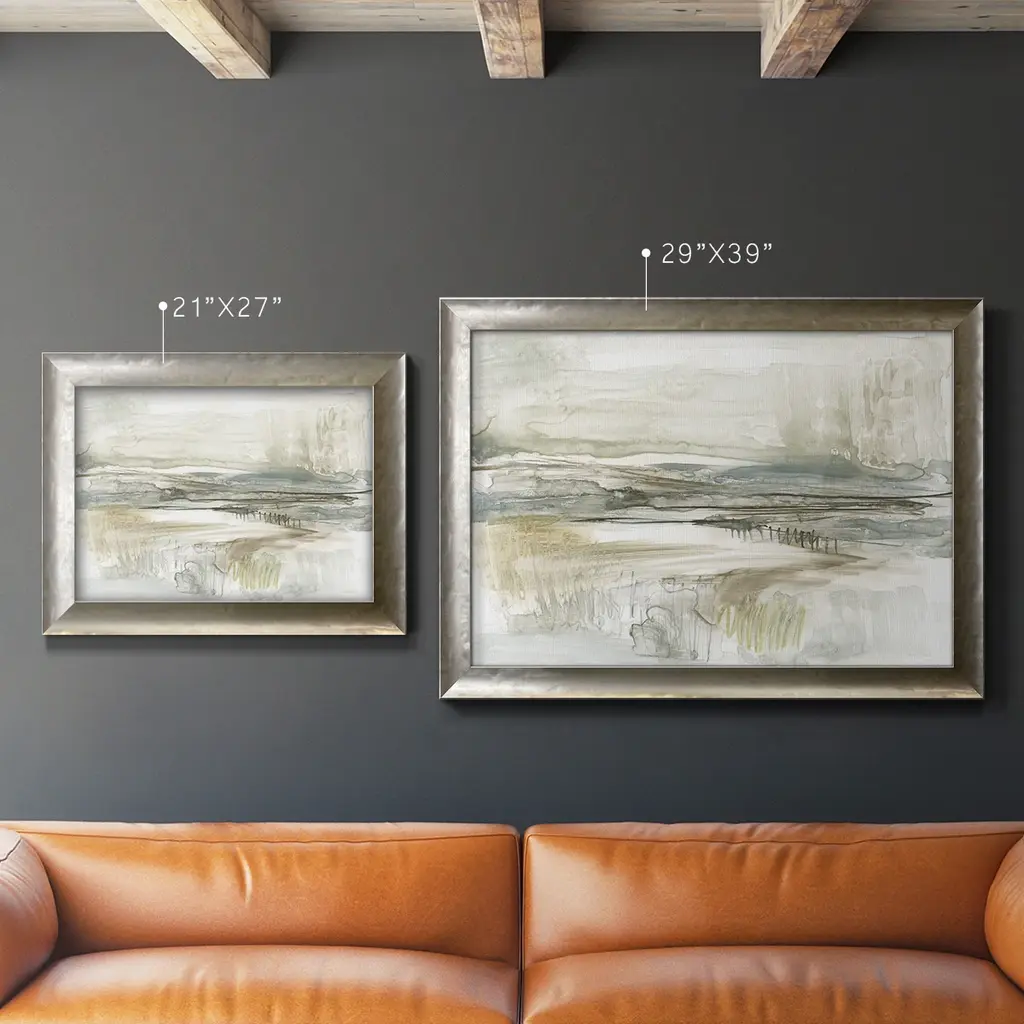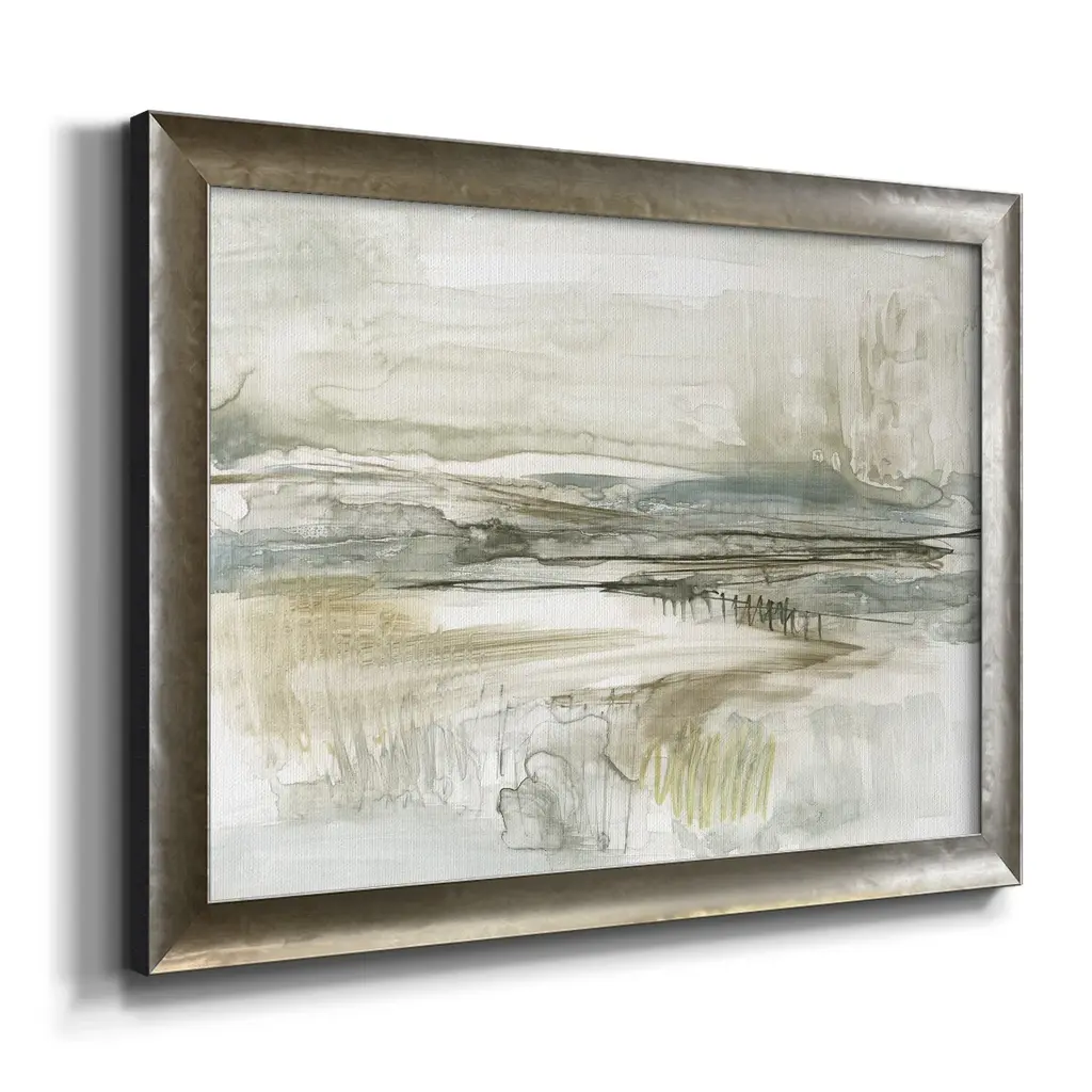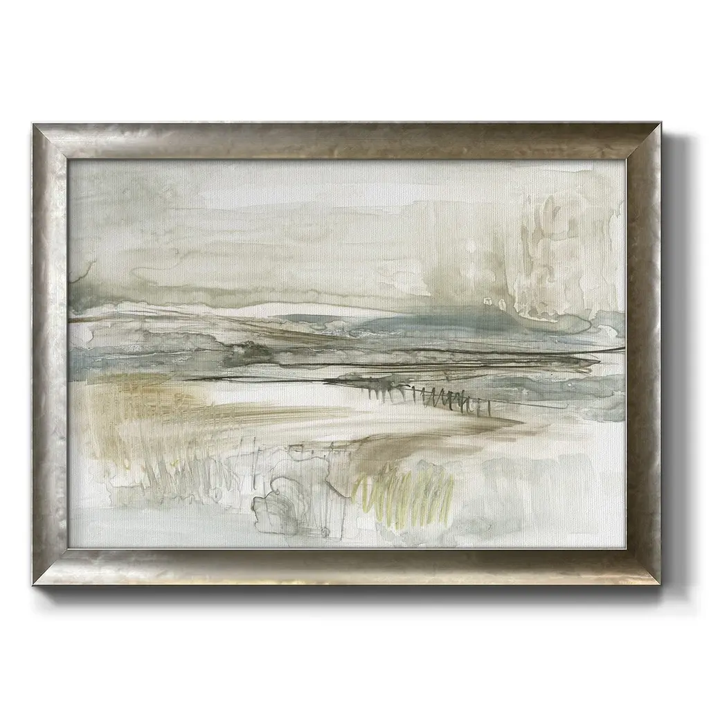 Stark Neutral Landscape II Premium Framed Canvas- Ready to Hang A Premium Framed Canvas created to last. Framed in distressed wood and available in an array of sizes and colors Featuring a beveled a solid wood stretcher bar, each piece comes ready to hand 3 SIZES AVAILABLE 16''X20'' - Overall Size 18'X27'' - Overall Size 24''x36'' - Overall Size Each piece is made to order. Each piece comes with hanging hardware. Made in the USA Ready to Hang Giclee Paper Print Acrylic Glass Beveled Matt Board