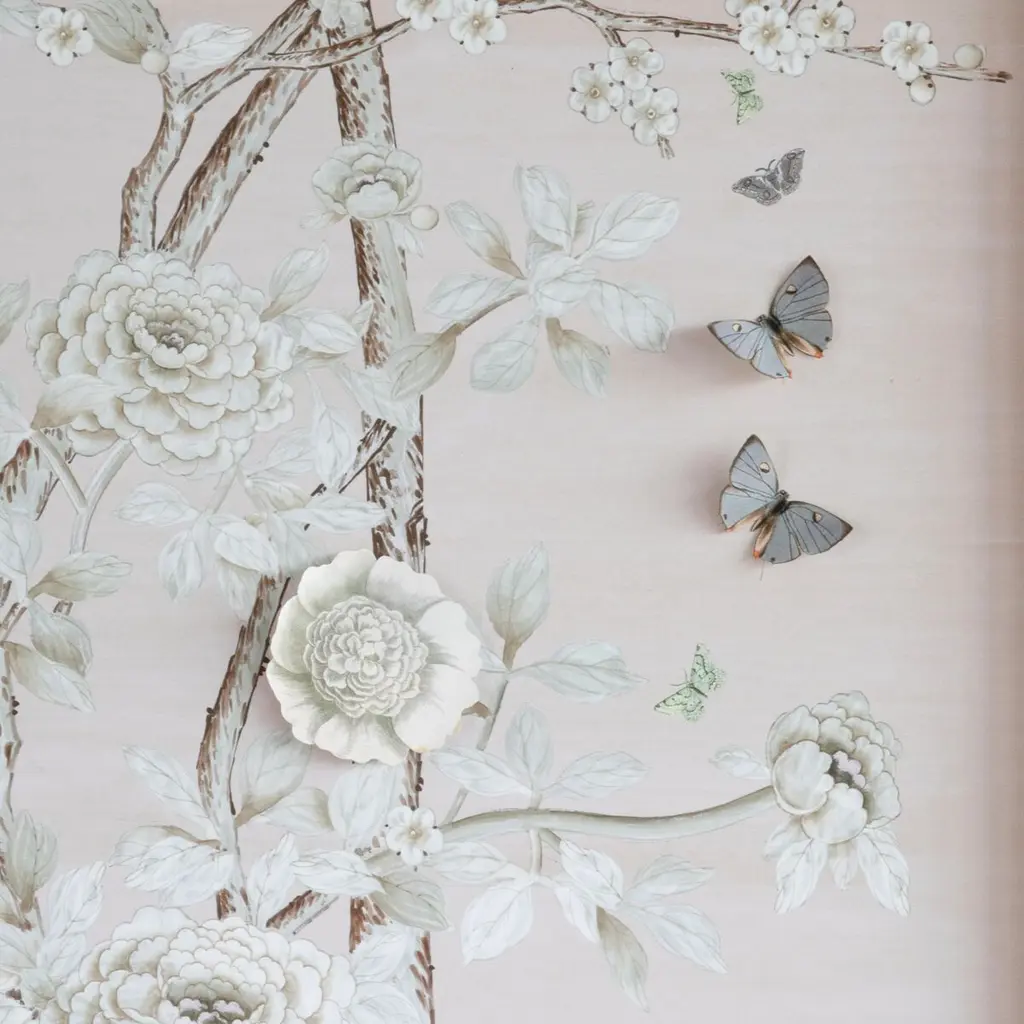 Hand-cut paper butterflies and flowers were attached atop this graceful giclée print, adding dimension to an already eye-catching image. The artwork arrives framed and ready to hang.