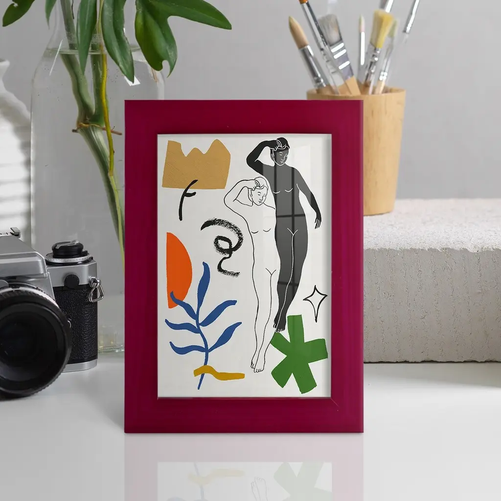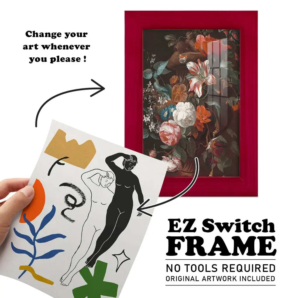 Starry Venus II -EZ SWITCH Framed Print w/glass-Cherry Red A delightful, framed print. Featuring a solid wood frame with real wood glass. This premium print is giclee quality. In addition, every frame features a removable back and table top stand. This allows you to change your art in the future or to just stand the art on a table for a new look. We are sure you'll enjoy our new series of EZ SWITCH Framed Art. Solid Wood Frame Real Glass Removable / Replaceable Art Built in Tabletop Stand Sizes range from 4x6 up to 12x15 - buy just one or pair them up as sets as you see fit.