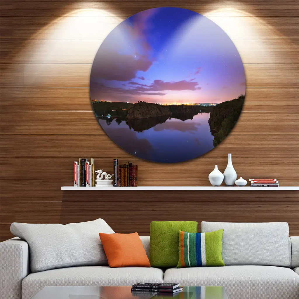 Stars And Clouds Reflection, Landscape Photo Disc Metal Artwork, 23"
