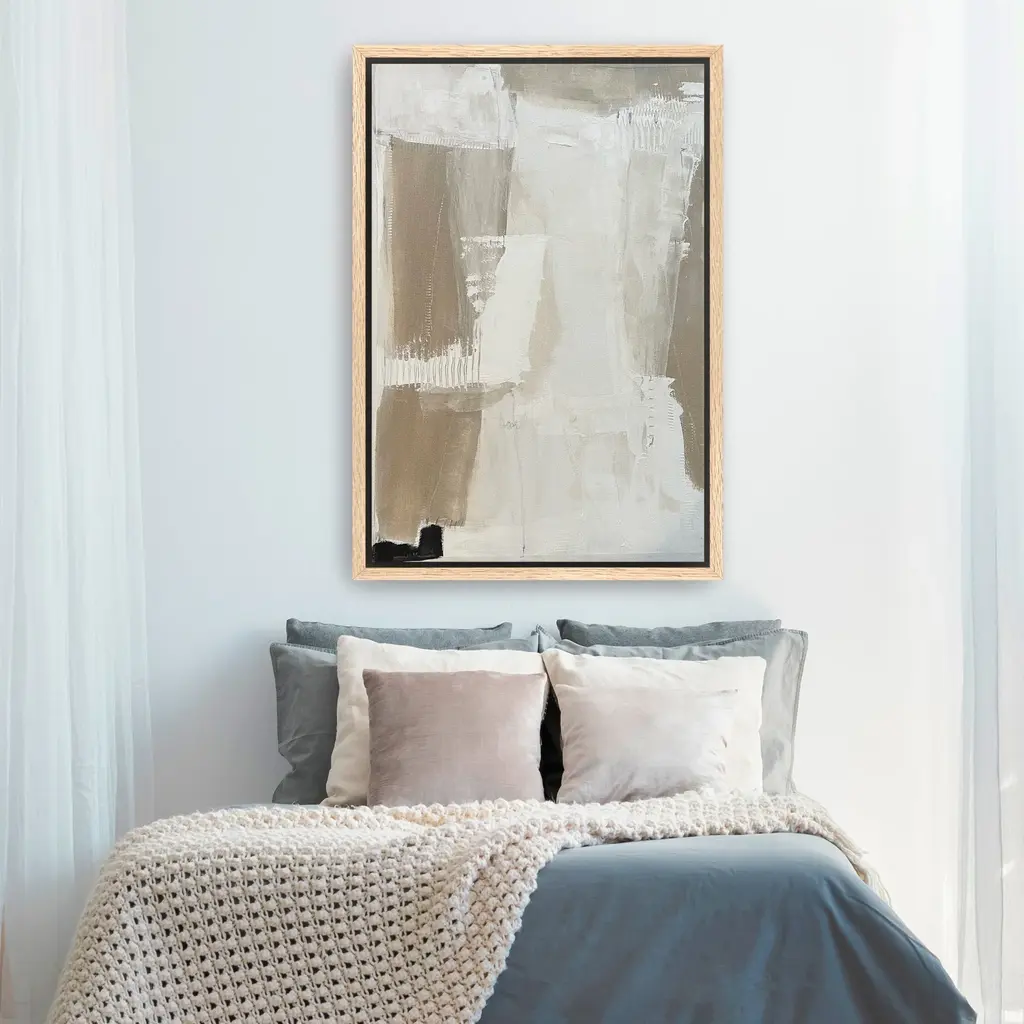 Transform your space with this stunning abstract canvas art print, where bold strokes and soft hues converge to create a timeless, eye-catching piece. Perfect for modern interiors, this artwork adds a splash of creativity and sophistication to any room.Available in black frame, dark walnut frame and oak frames, or as a frameless canvas. Our Gallery Wrap Canvas Prints are proudly assembled with high quality materials in California, USA. Each piece is printed on a thick, archival grade canvas using Giclee technology. It is then hand-stretched by our experienced artisans over solid pine bars, which will not warp over time. The final product is a piece personally crafted for you to confidently display on your wall. Care and Assembly: Ensure that the location of your piece has little to no exposure to heat, sunlight, and moisture. Wipe clean, only if needed. Each piece includes a sawtooth hanger to hang on your wall vertically.