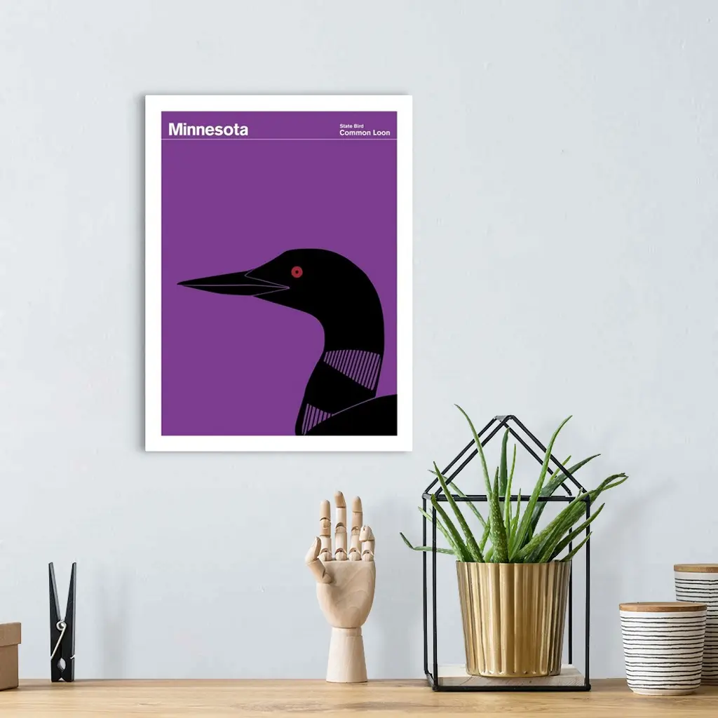 State Posters - Minnesota State Bird: Common Loon wall art for home and office decor. Discover canvas art prints, photos, mural, big canvas art and framed wall art in GreatBigCanvas.com's varied collections.