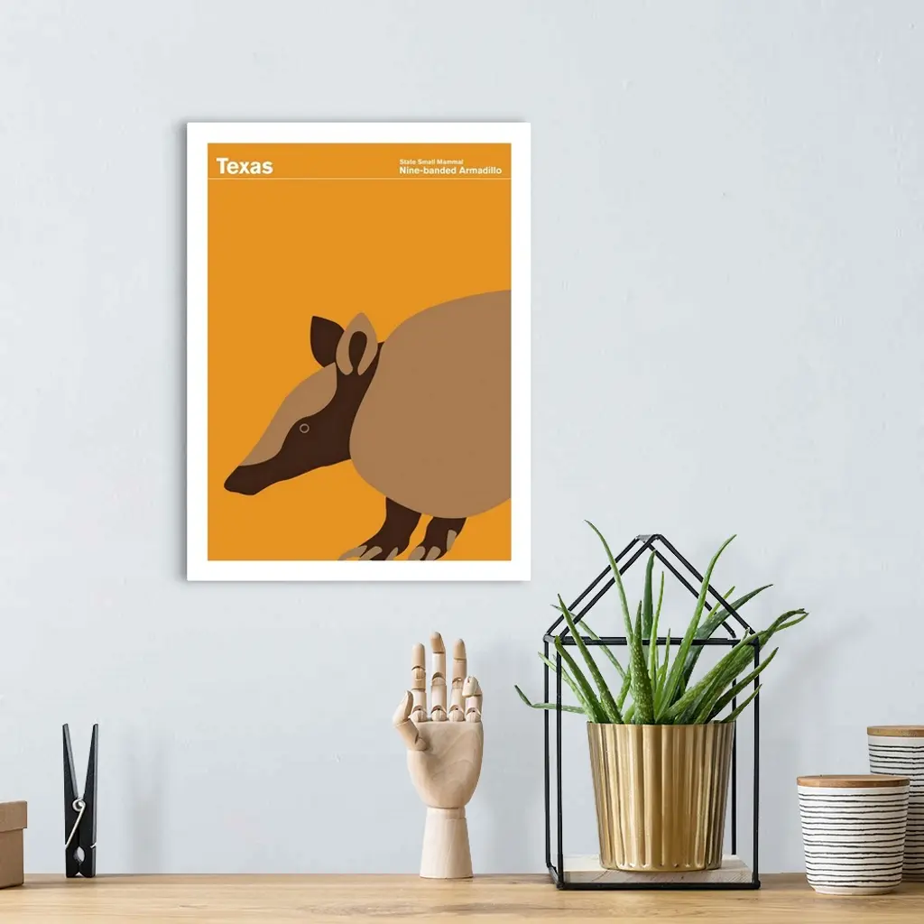 State Posters - Texas State Small Mammal: Nine-banded Armadillo wall art for home and office decor. Discover canvas art prints, photos, mural, big canvas art and framed wall art in GreatBigCanvas.com's varied collections.