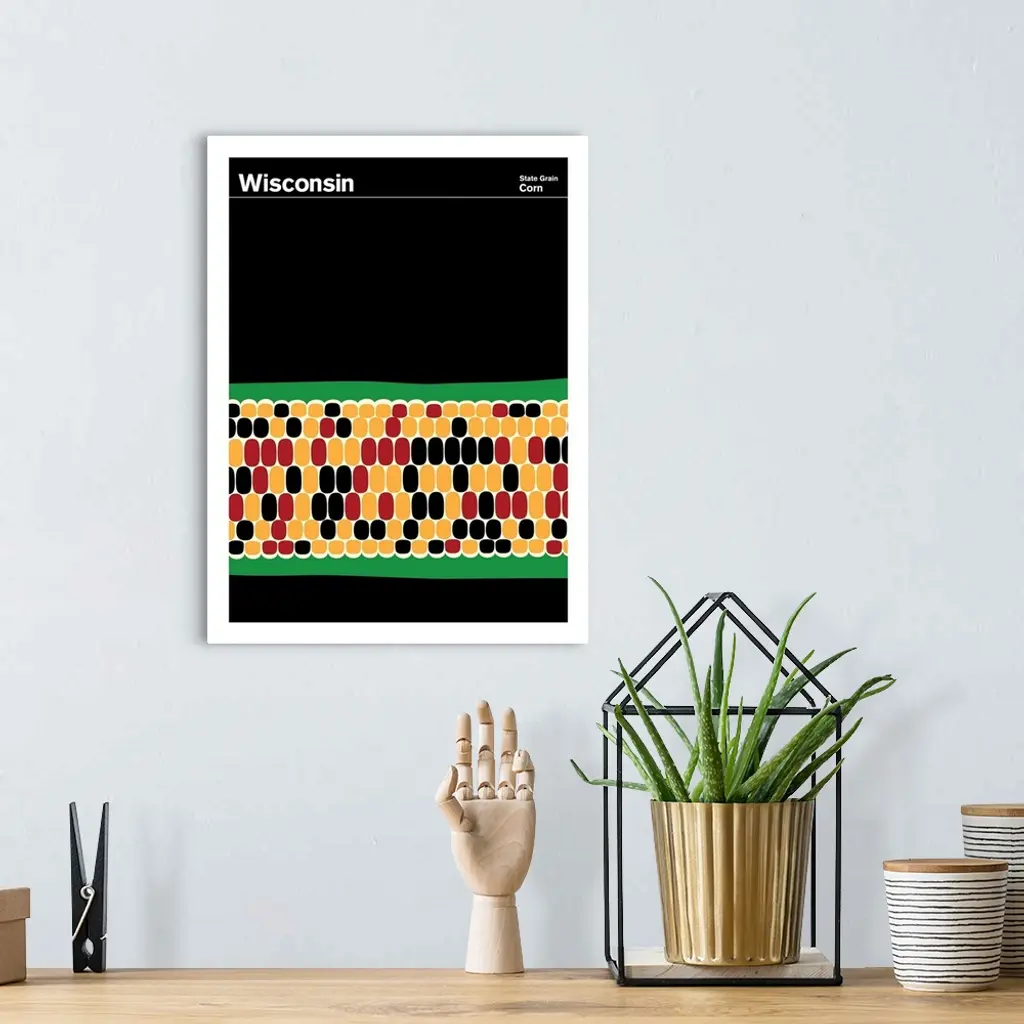 State Posters - Wisonsin State Grain: Corn wall art for home and office decor. Discover canvas art prints, photos, mural, big canvas art and framed wall art in GreatBigCanvas.com's varied collections.