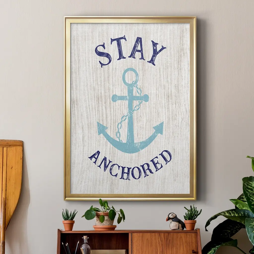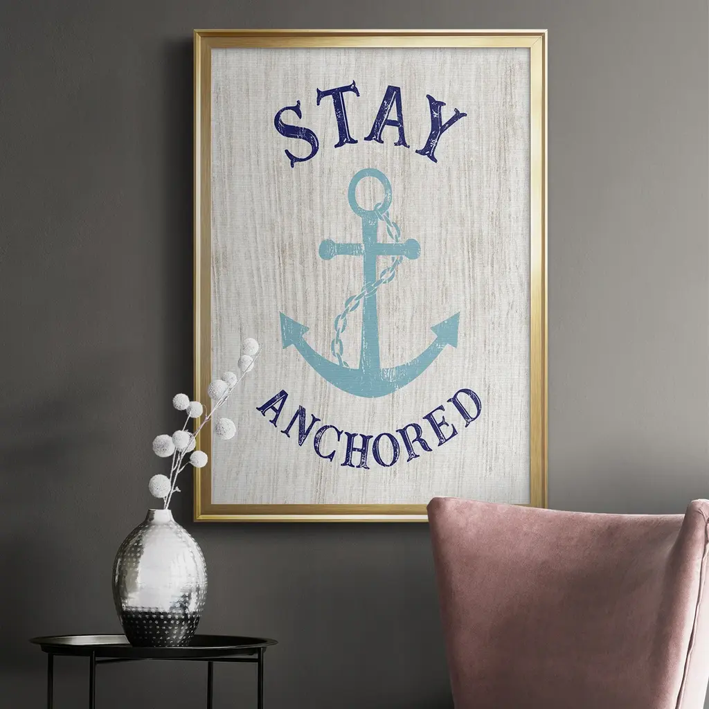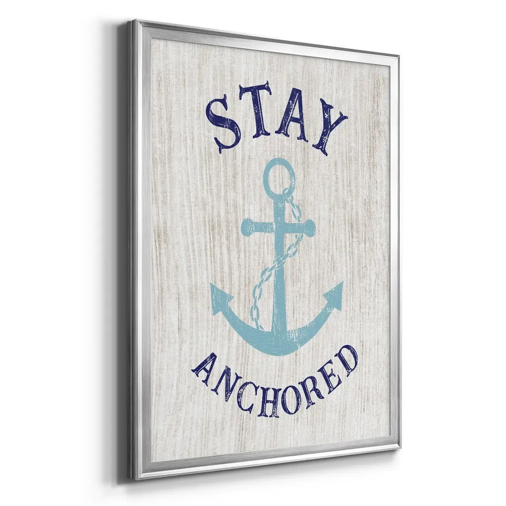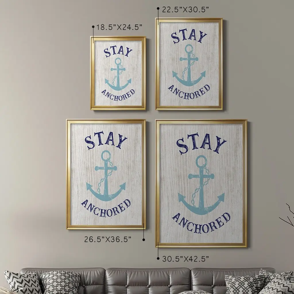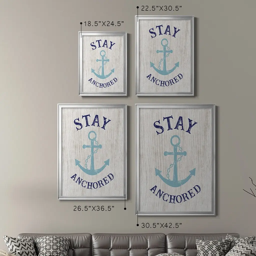 Stay Anchored Premium Framed Print - Ready to Hang A Premium Framed Print created to last. Framed in distressed wood and available in an array of sizes and colors Featuring a beveled a solid wood stretcher bar, each piece comes ready to hand 4 SIZES AVAILABLE 30.5''X42.5'' - Overall Size 26.5'X36.5'' - Overall Size 22.5''x30.5'' - Overall Size 18.5''x24.5'' - Overall Size Each piece is made to order. Each piece comes with hanging hardware. Made in the USA Ready to Hang