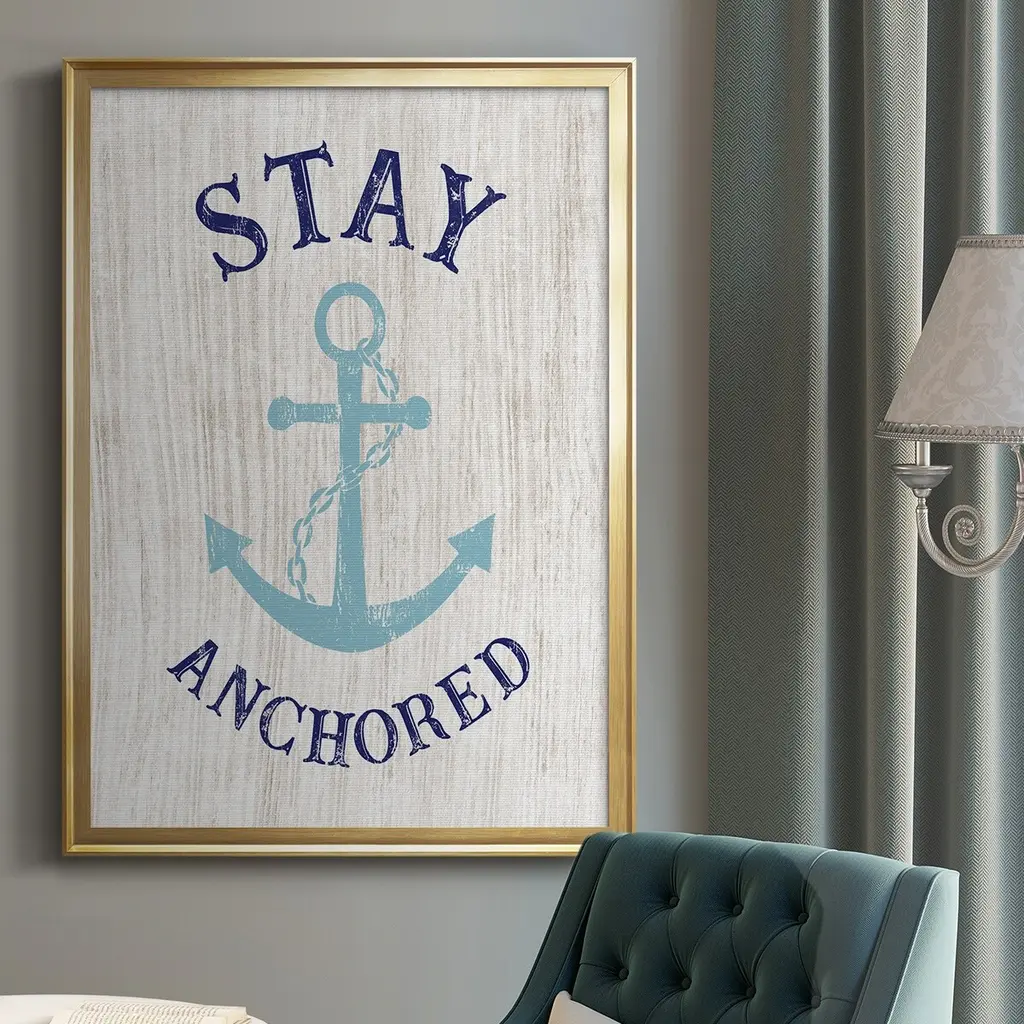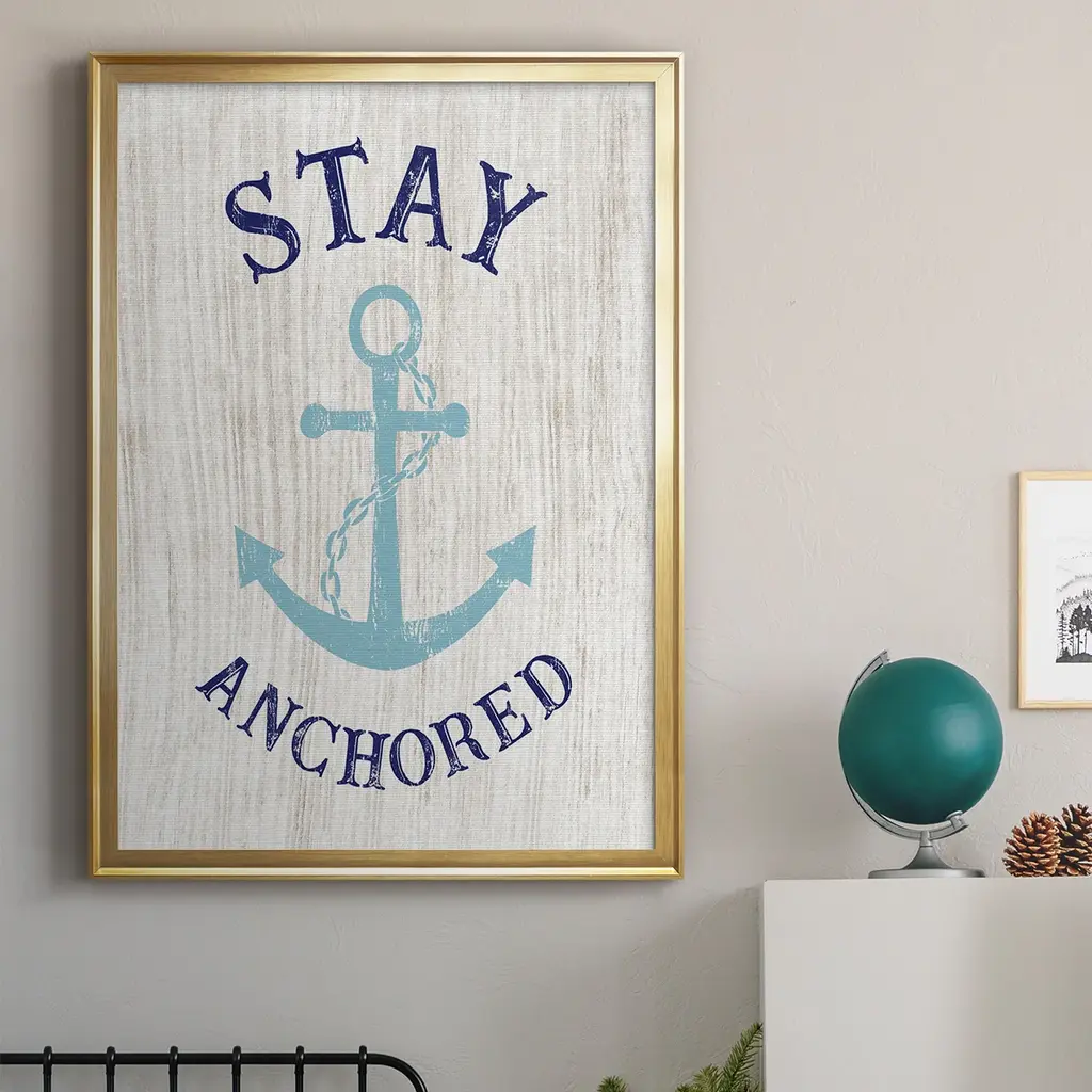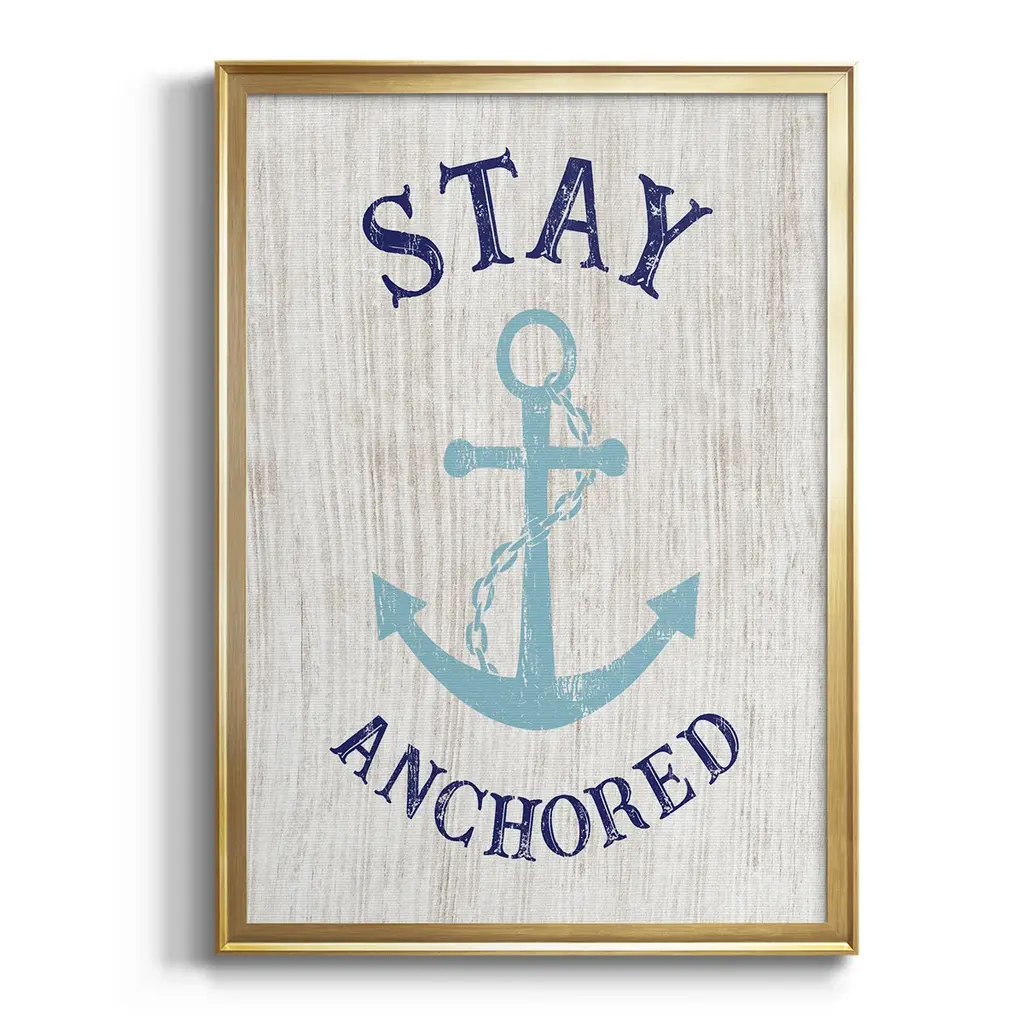 Stay Anchored Premium Framed Print - Ready to Hang A Premium Framed Print created to last. Framed in distressed wood and available in an array of sizes and colors Featuring a beveled a solid wood stretcher bar, each piece comes ready to hand 4 SIZES AVAILABLE 30.5''X42.5'' - Overall Size 26.5'X36.5'' - Overall Size 22.5''x30.5'' - Overall Size 18.5''x24.5'' - Overall Size Each piece is made to order. Each piece comes with hanging hardware. Made in the USA Ready to Hang