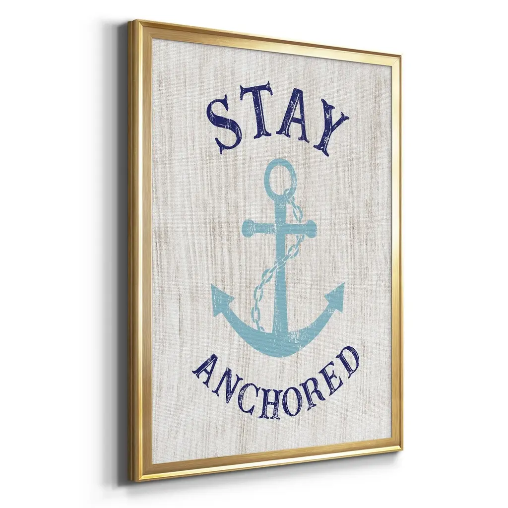 Stay Anchored Premium Framed Print - Ready to Hang A Premium Framed Print created to last. Framed in distressed wood and available in an array of sizes and colors Featuring a beveled a solid wood stretcher bar, each piece comes ready to hand 4 SIZES AVAILABLE 30.5''X42.5'' - Overall Size 26.5'X36.5'' - Overall Size 22.5''x30.5'' - Overall Size 18.5''x24.5'' - Overall Size Each piece is made to order. Each piece comes with hanging hardware. Made in the USA Ready to Hang