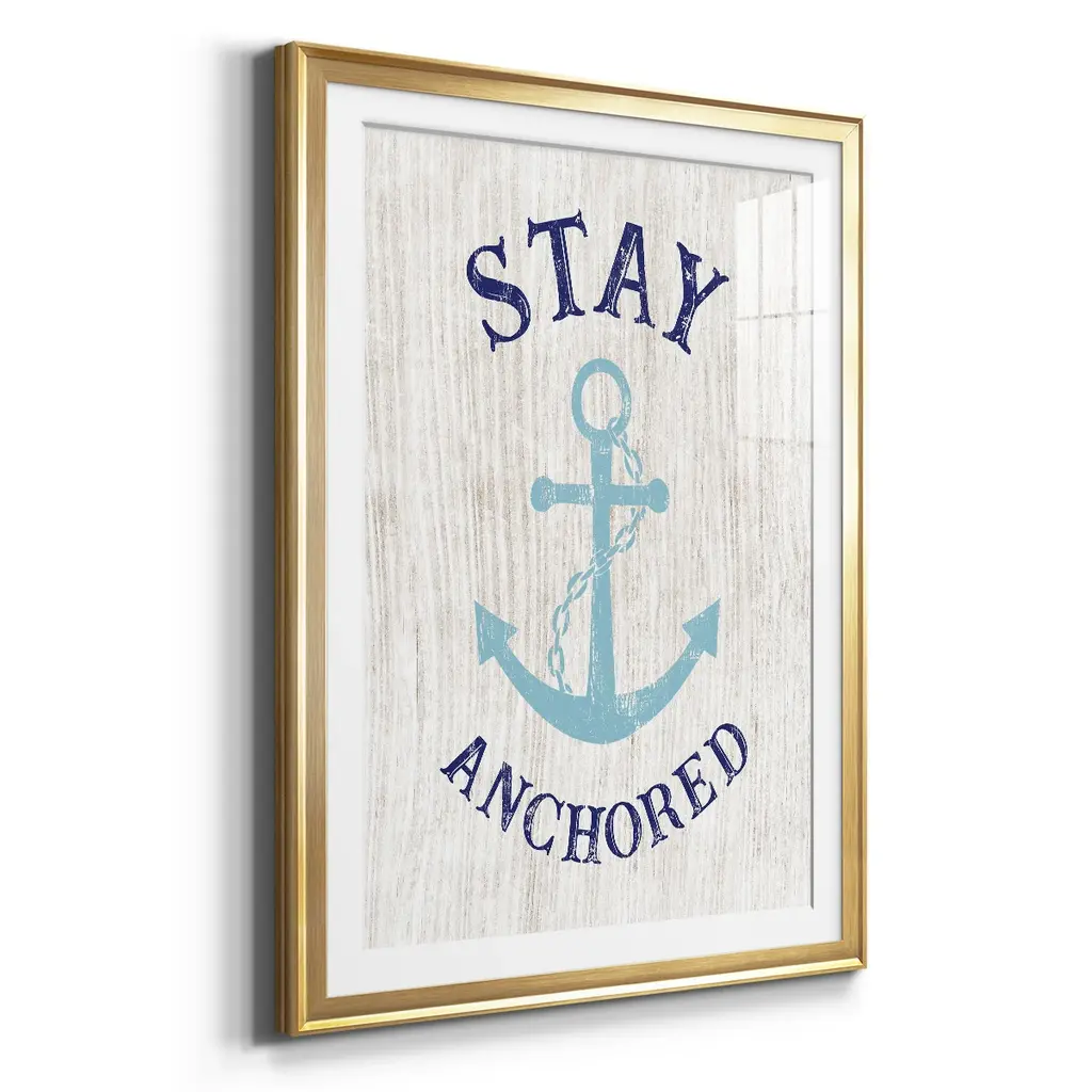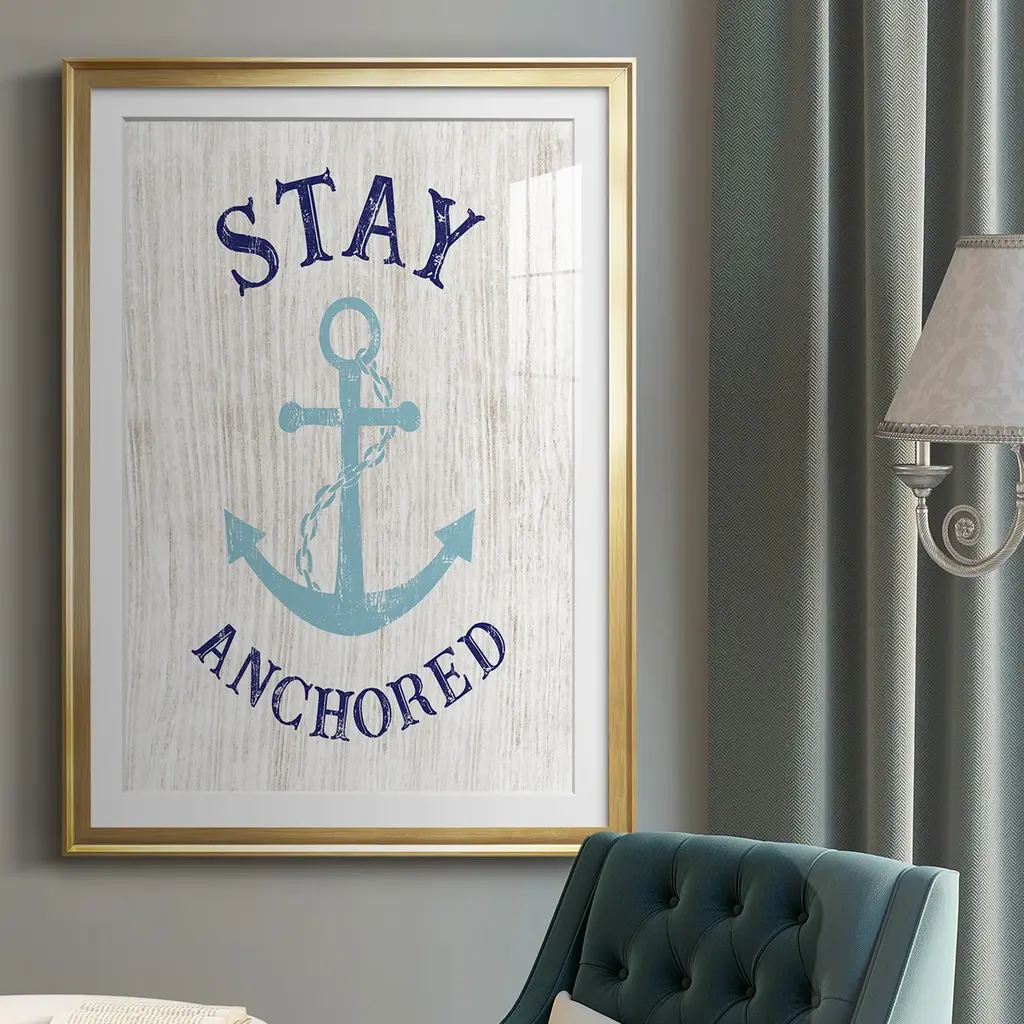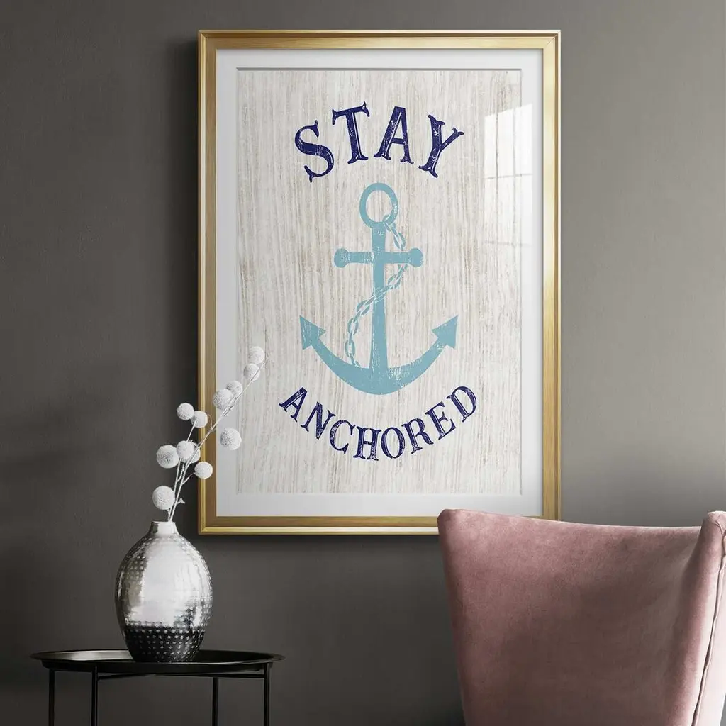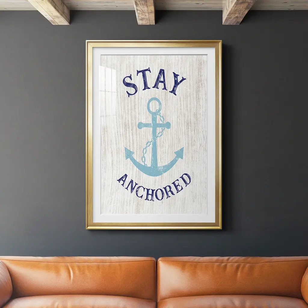 Stay Anchored Premium Framed Print - Ready to Hang A Premium Framed Print created to last. Framed in distressed wood and available in an array of sizes and colors Featuring a beveled a solid wood stretcher bar, each piece comes ready to hand 4 SIZES AVAILABLE 30.5''X42.5'' - Overall Size 26.5'X36.5'' - Overall Size 22.5''x30.5'' - Overall Size 18.5''x24.5'' - Overall Size Each piece is made to order. Each piece comes with hanging hardware. Made in the USA Ready to Hang Giclee Paper Print Acrylic Glass Beveled Matt Board