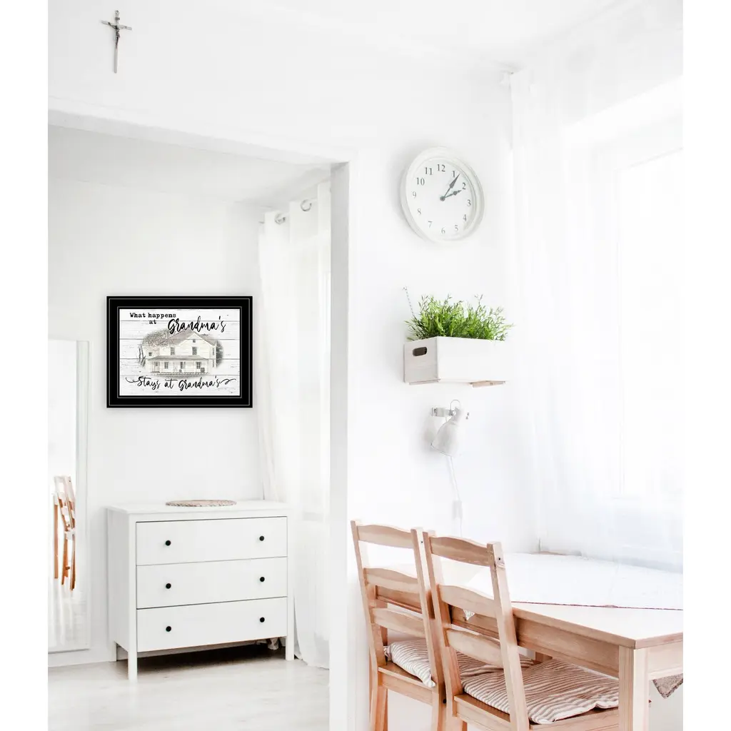 The stays at grandmas black framed print wall art is the perfect decorative accessory for your home. This print is a visual artistic expression that allows you to decorate your space in style. Reproduced for you on paper, this hanging decorative accent will be a trendy and fashionable way to dress your walls. Adding this hanging wall art to your space to make your room feel more finished and attractive. Instantly liven up your space with this art that brings color and dimension to your walls. 15" H x 19" W x 1" D