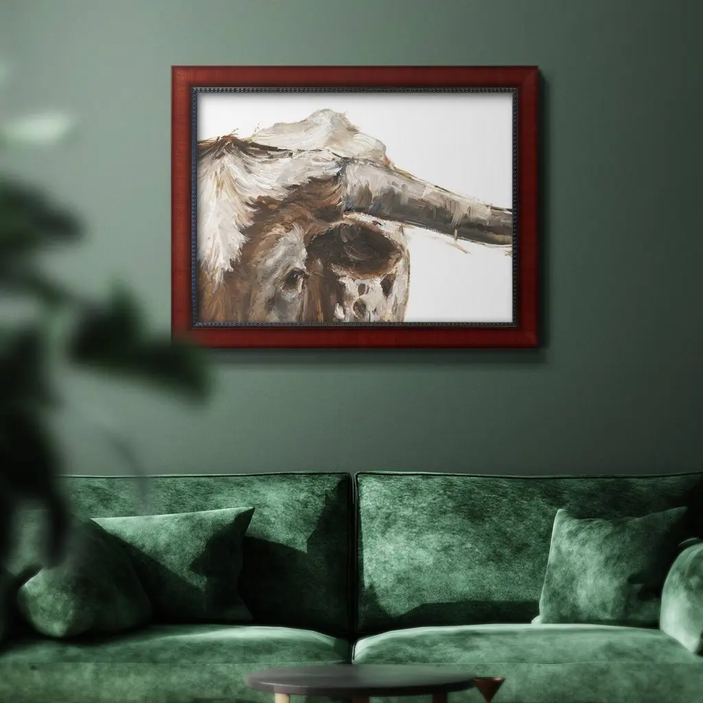 Steer Clear Ii Premium Framed Canvas- Ready To Hang - 18x27 - Mahogany
