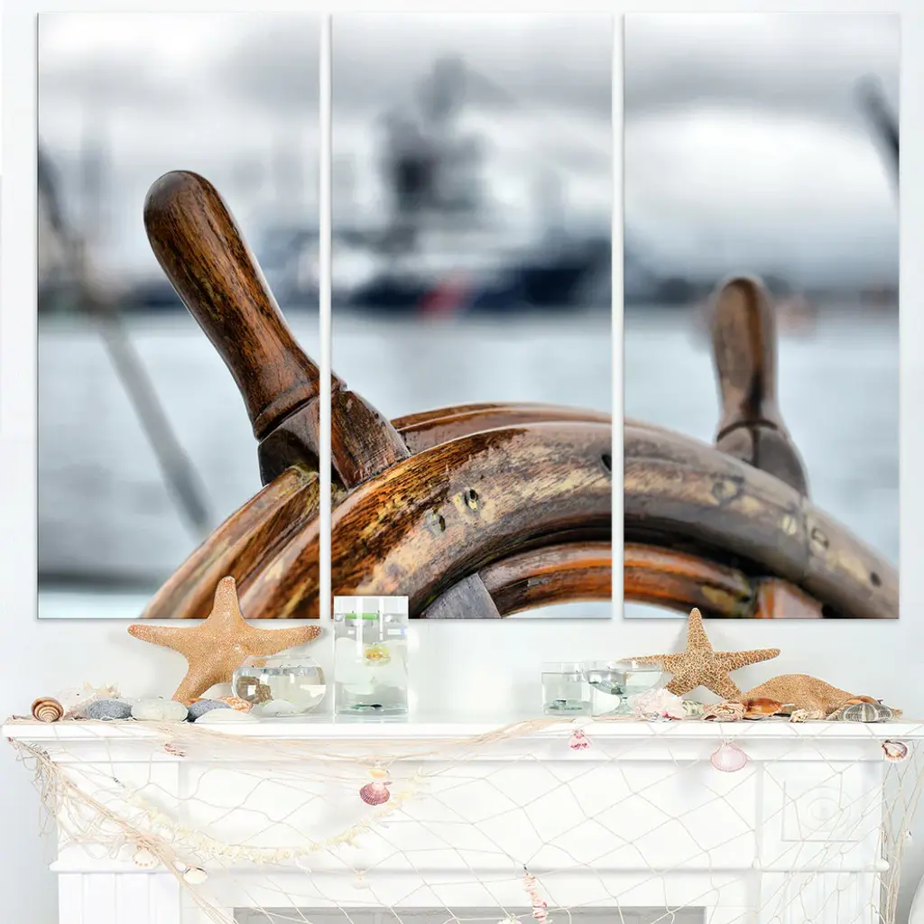 "Steering Wheel Sailboat" Photography Canvas Print, 3 Panels, 36"x28"