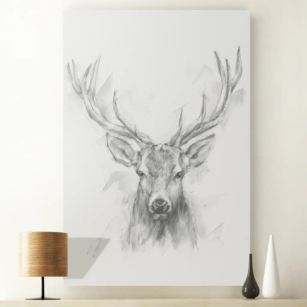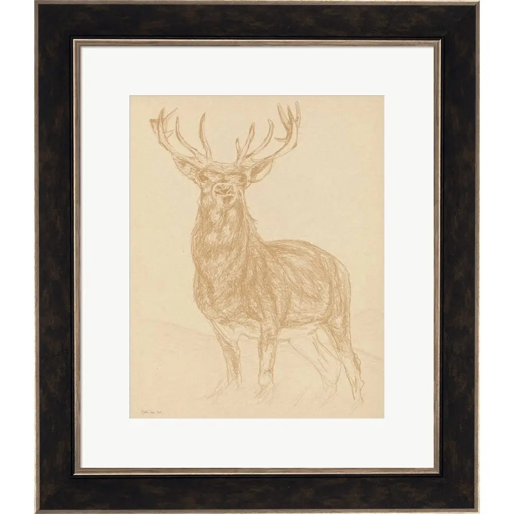 Buck Sketch by Stellar Design Studio is a high quality piece of framed artwork. The finished size of this piece is 20.5" X 23.5". It has a Bronze Washed Espresso Brown with Bronze Edges frame, is single matted and finished with high quality Acrylic Plexiglass. 100% Satisfaction Guaranteed.