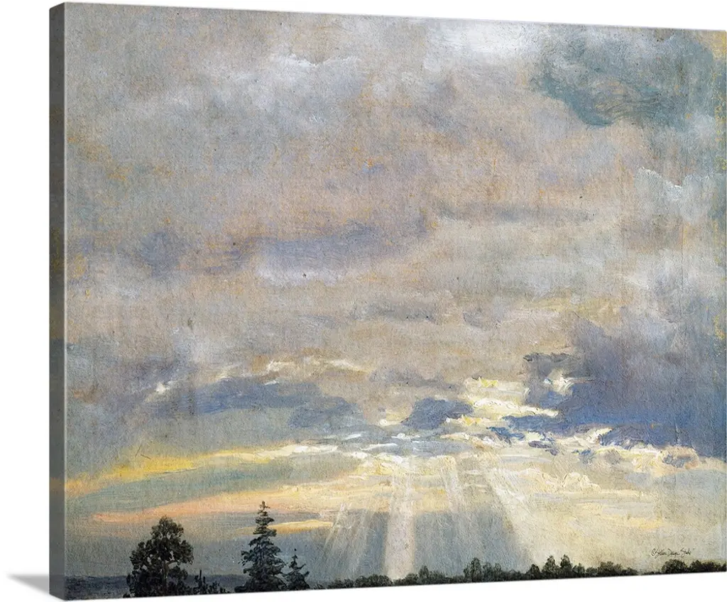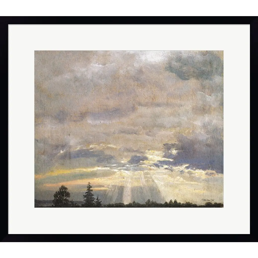 Cloud Study with Sunbeams by Stellar Design Studio is a high quality piece of framed artwork. The finished size of this piece is 24" X 21". It has a Petite Black with Flat Front frame, is single matted and finished with high quality Acrylic Plexiglass. 100% Satisfaction Guaranteed.