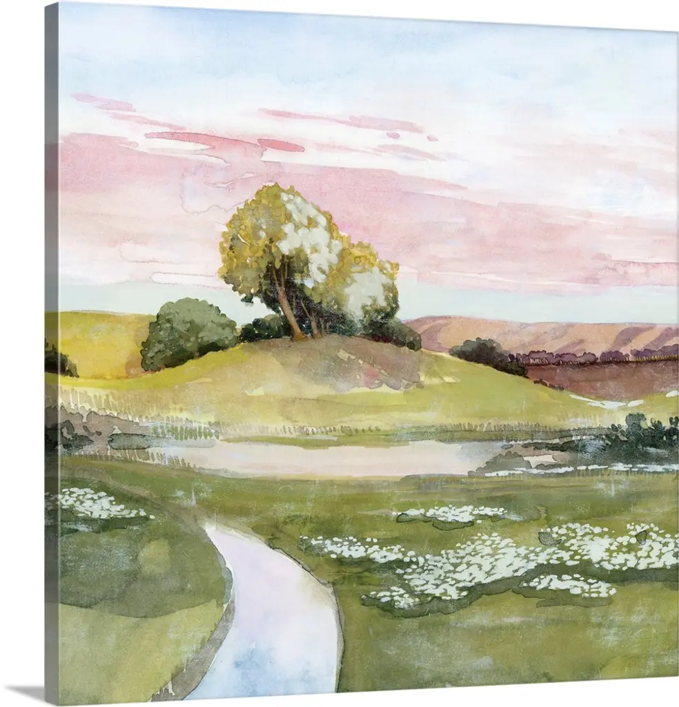 Pastel Countryside 1 by Stellar Design Studio is a high quality piece of canvas artwork. The finished size of this piece is 24" X 24", and it has a depth 1.5". There is a UV protective coating over the entire image, and it is ready to hang on your wall with no hardware required.