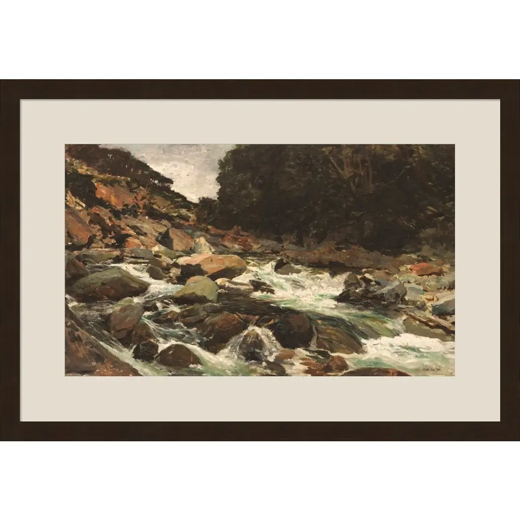 Rocky Stream by Stellar Design Studio is a high quality piece of framed artwork. The finished size of this piece is 26.25" X 18.25". It has a Slim Dark Bronze Brown with Satin Finish frame, is single matted and finished with high quality Acrylic Plexiglass. 100% Satisfaction Guaranteed.