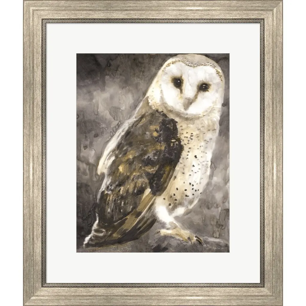 Snowy Owl 2 by Stellar Design Studio is a high quality piece of framed artwork. The finished size of this piece is 20" X 23.5". It has a Classic Champagne Silver with Ornate Inner Edge frame, is single matted and finished with high quality Acrylic Plexiglass. 100% Satisfaction Guaranteed.