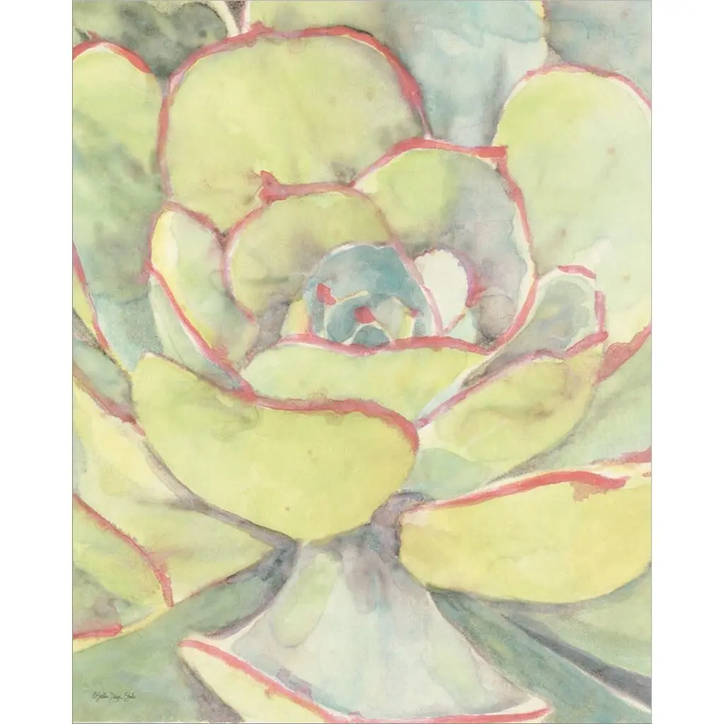 Succulent Bloom 1 by Stellar Design Studio is a high quality piece of canvas artwork. The finished size of this piece is 22.5" X 28", and it has a depth 1.5". There is a UV protective coating over the entire image, and it is ready to hang on your wall with no hardware required. 100% Satisfaction Guaranteed.