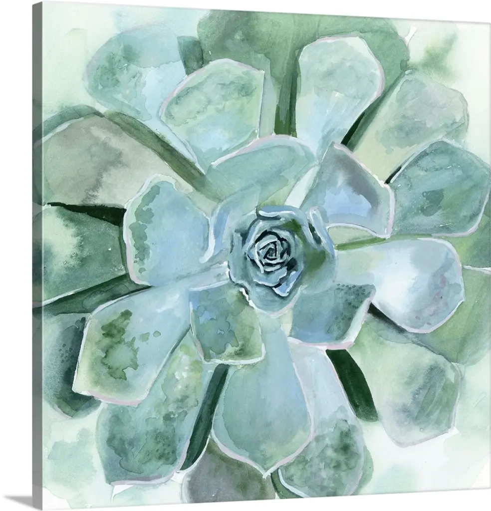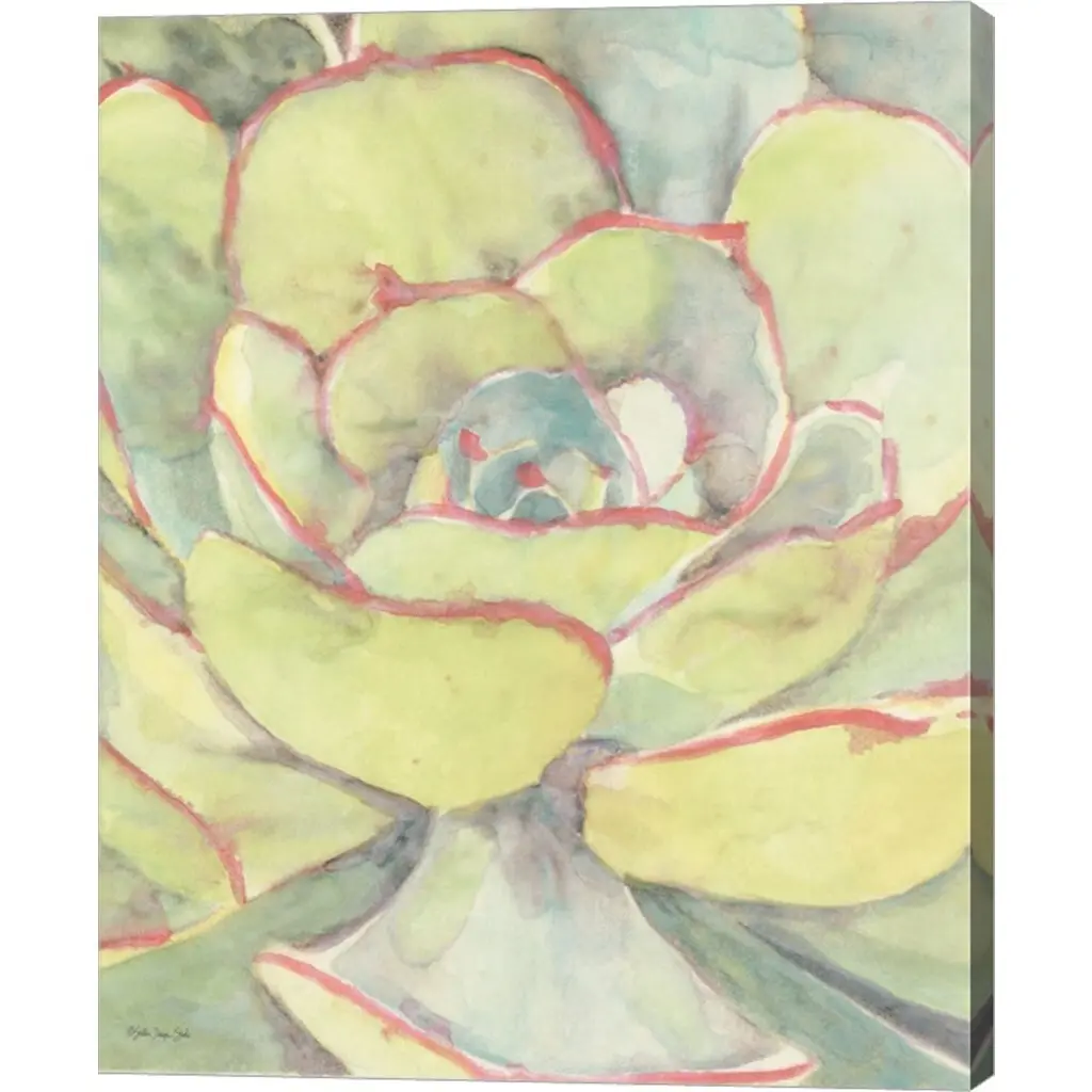 Succulent Bloom 2 by Stellar Design Studio is a high quality piece of canvas artwork. The finished size of this piece is 22.5" X 28", and it has a depth 1.5". There is a UV protective coating over the entire image, and it is ready to hang on your wall with no hardware required. 100% Satisfaction Guaranteed.