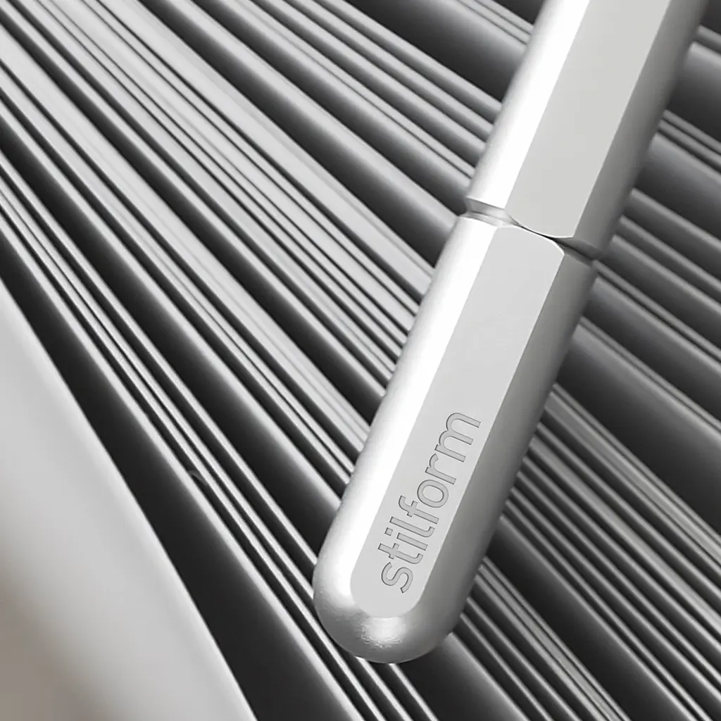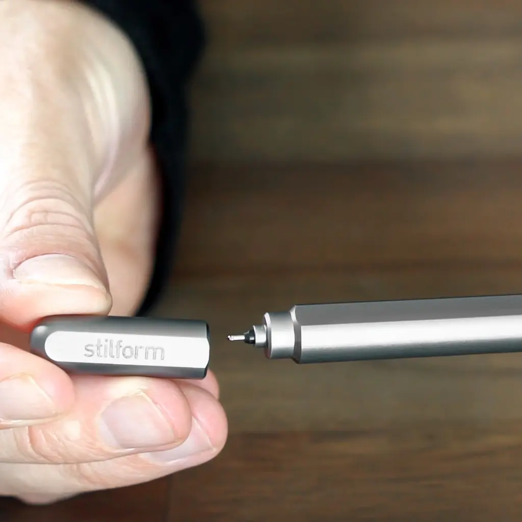 Meet the perfect tool that will help you create and bring your ideas to life: the Stilform Aluminum Arc Gel Pen. An award-winning design, this gel pen features a unique self-aligning mechanism that uses magnets to align the cap and the body perfectly, with a satisfying click. Flat sides keep the pen from rolling away on a table while also improving grip and writing comfort. Designed to work with the renowned Pilot refills, this aluminum gel pen writes and sketches smoothly, making it ideal for illustrators, architects, designers, writers, and other creatives. Crafted to last, this version of the Stilform Arc Gel Pen is precision machined from high-grade aluminum and comes in different colors.