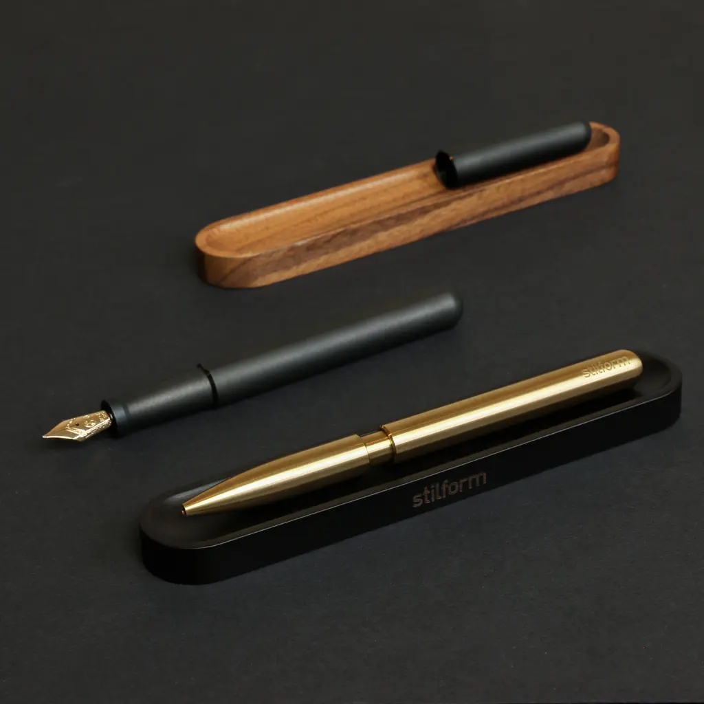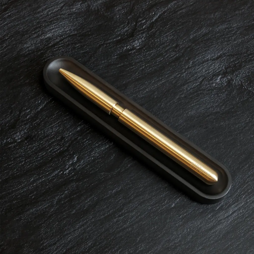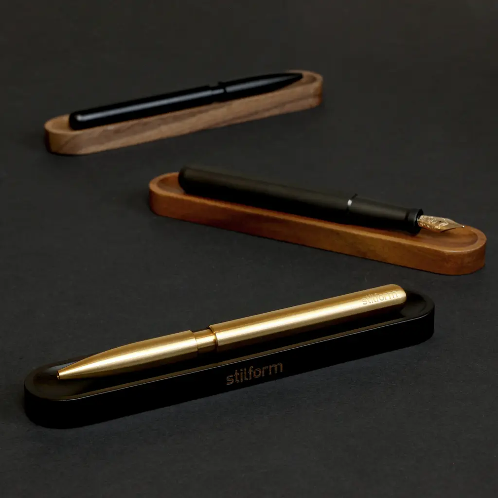 As gorgeous as it is innovative, the award-winning Brass Ballpoint Pen from Stilform provides an elegant way to write, draw, and sketch. It’s also the perfect gift. Made with a revolutionary magnetic mechanism, this pen doesn’t need a cap. Instead, the top section shifts to cover or reveal the writing tip, changing the look of this brass ballpoint pen at the same time. A rounded body fits into your hand perfectly. Manufactured from brass, this pen features a gold color and a brushed finish with a tactile surface. This writing tool has received many prestigious awards, including the iF Design Award, the Good Design Award, and the Red Dot Design Award Best of the Best award.