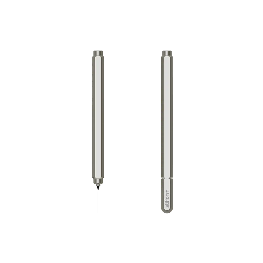 (Re)discover the joy of writing, sketching and planning with the beautifully designed Stilform Titanium Arc Gel Pen. Developed with creatives in mind, this pen features an elegant rounded body with anti-roll flat sides. The cap self-aligns with the body perfectly thanks to an innovative magnetic mechanism. Made to hold Pilot refills, this gel pen is ideal for illustrations, architectural plans, design sketches, writing, and more. This version is expertly crafted with precision machining techniques from high-grade titanium and features either a light matte or a dark DLC finish. Perfect as a gift, the Stilform Titanium Arc Gel Pen has received the iF Design Award and the Good Design award.