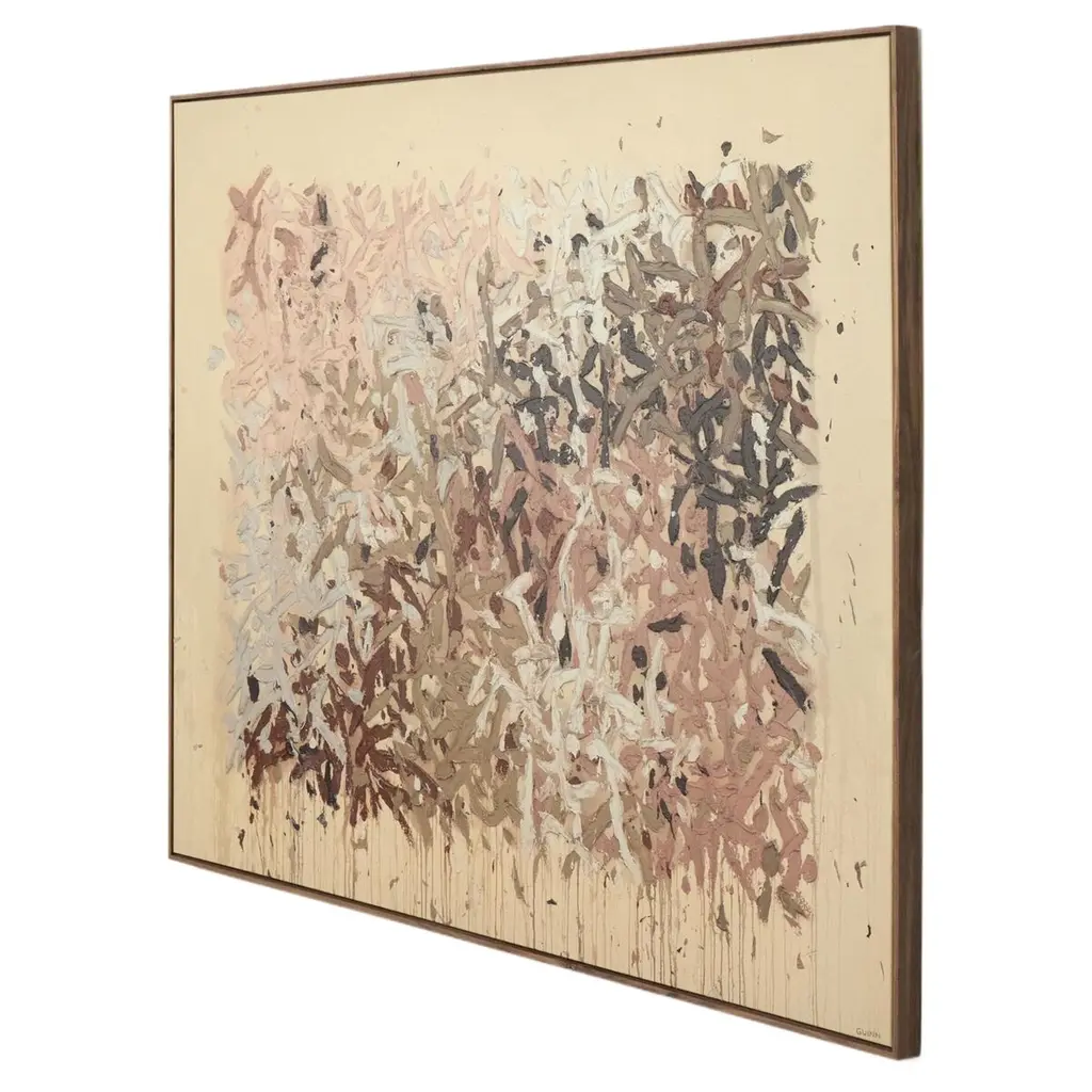 Based in Austin, Texas, abstract-expressionist painter Tyler Guinn looks to texture and organic sensibility to shape his wide variety of works, from geometric pieces and flowing landscapes to mark making and automatic writing. If not currently in stock, this texture-enhanced piece ships within three weeks. Handmade in Austin, Texas.